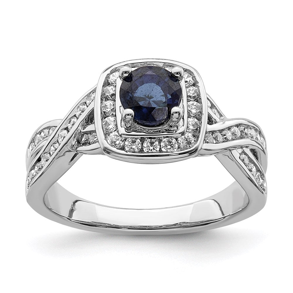 Solid 14k White Gold Simulated Sapphire CZ Halo Engagement Ring