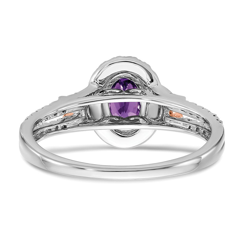 Solid 14K White/Rose Gold White w/RG Accent Simulated Amethyst and CZ Halo Ring