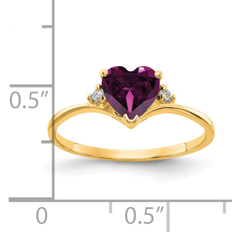Solid 14k Yellow Gold 6mm Heart Rhodolite Simulated Garnet VS CZ Ring