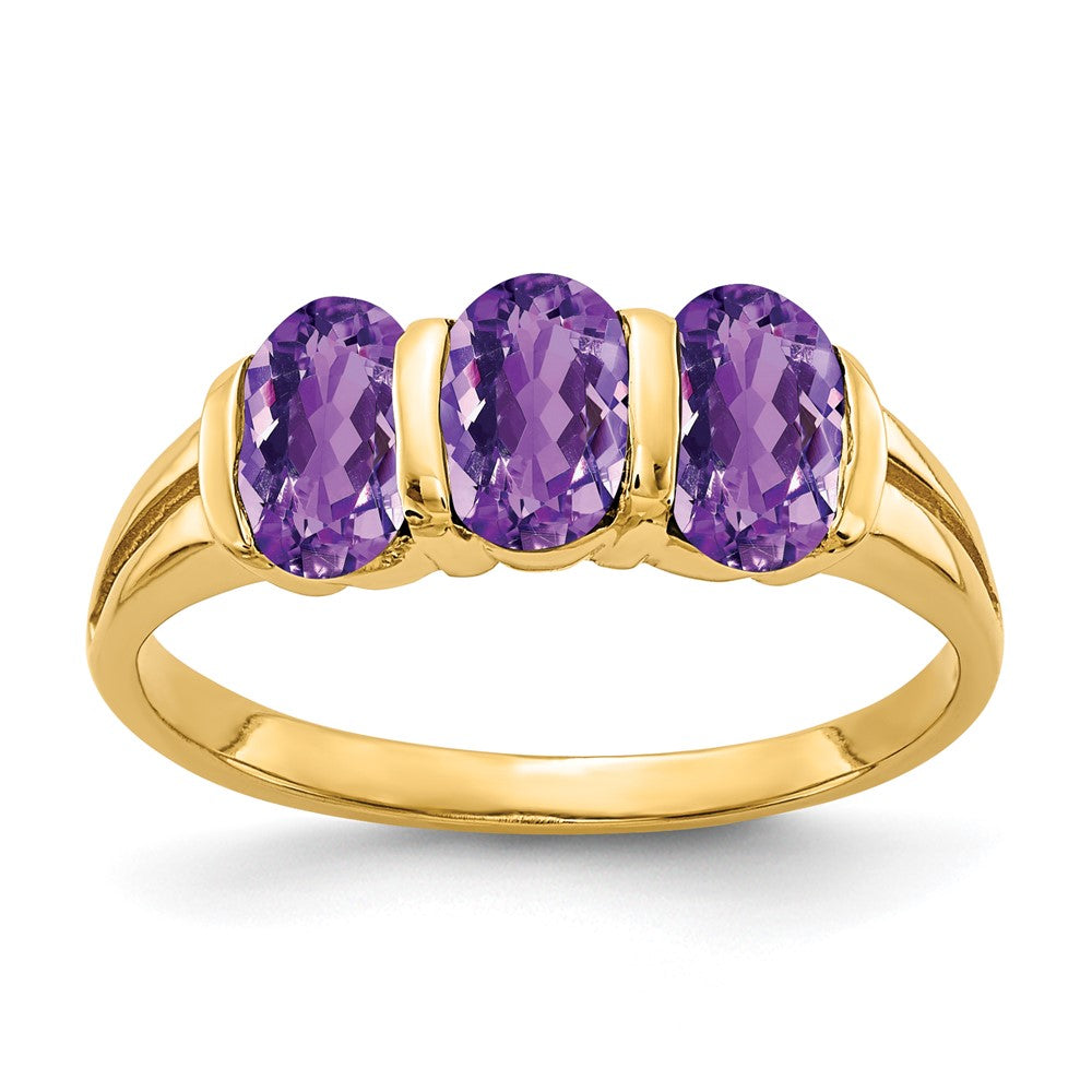 Solid 14k Yellow Gold 6x4mm Oval Simulated Amethyst Ring