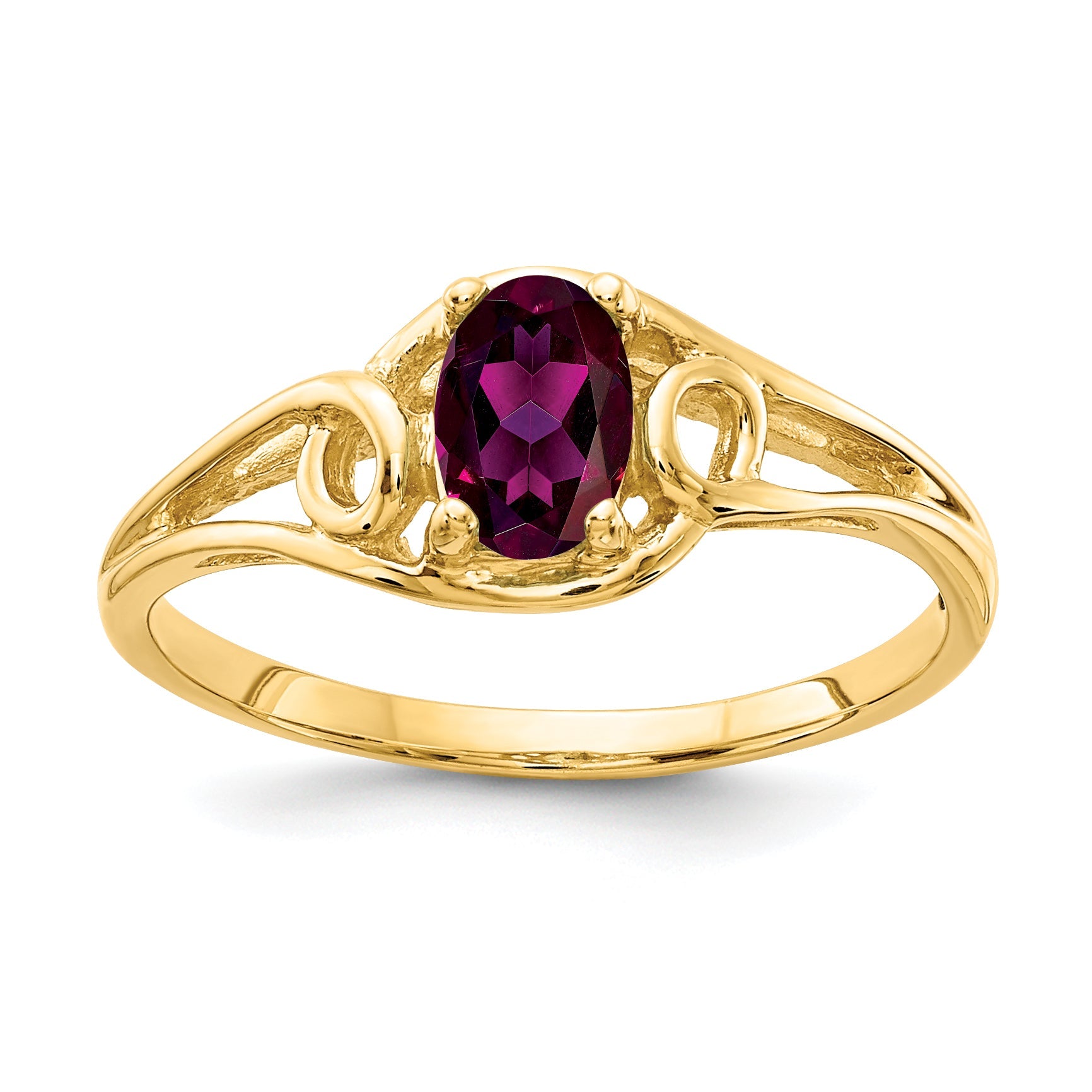 Solid 14k Yellow Gold 7x5mm Oval Rhodolite Simulated Garnet Ring