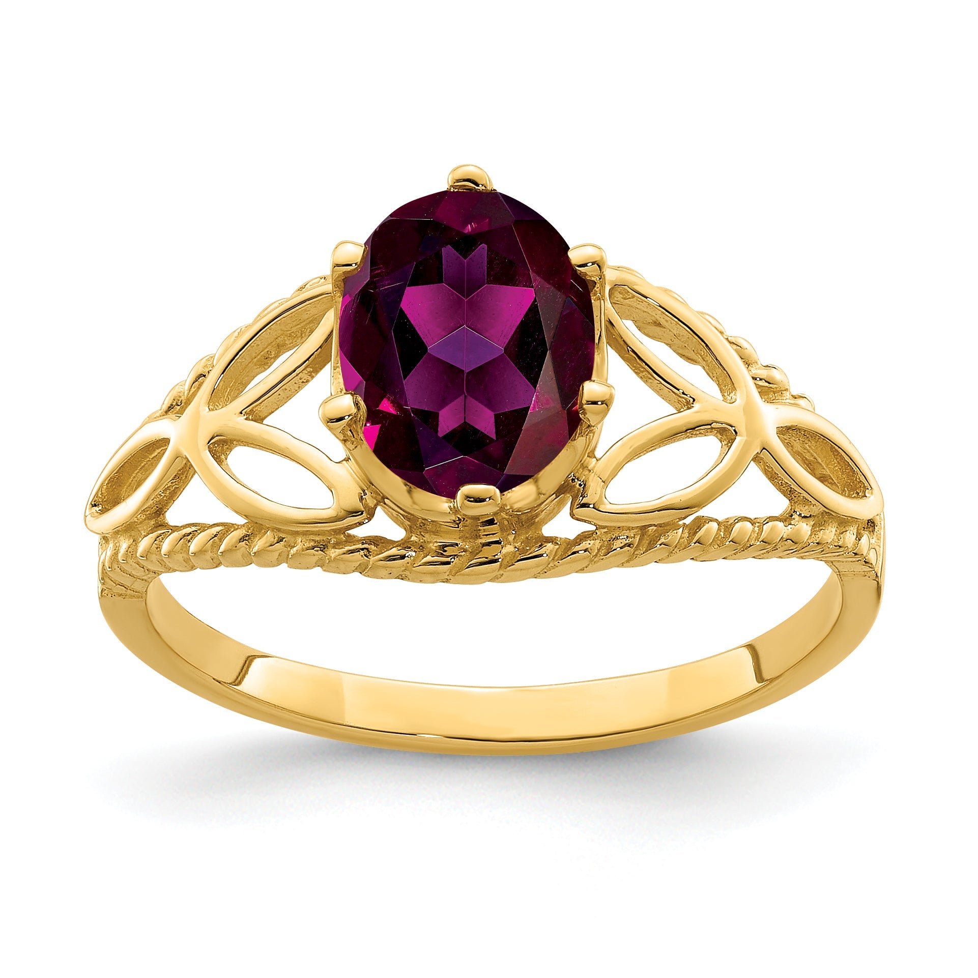Solid 14k Yellow Gold 8x6mm Oval Rhodolite Simulated Garnet Ring