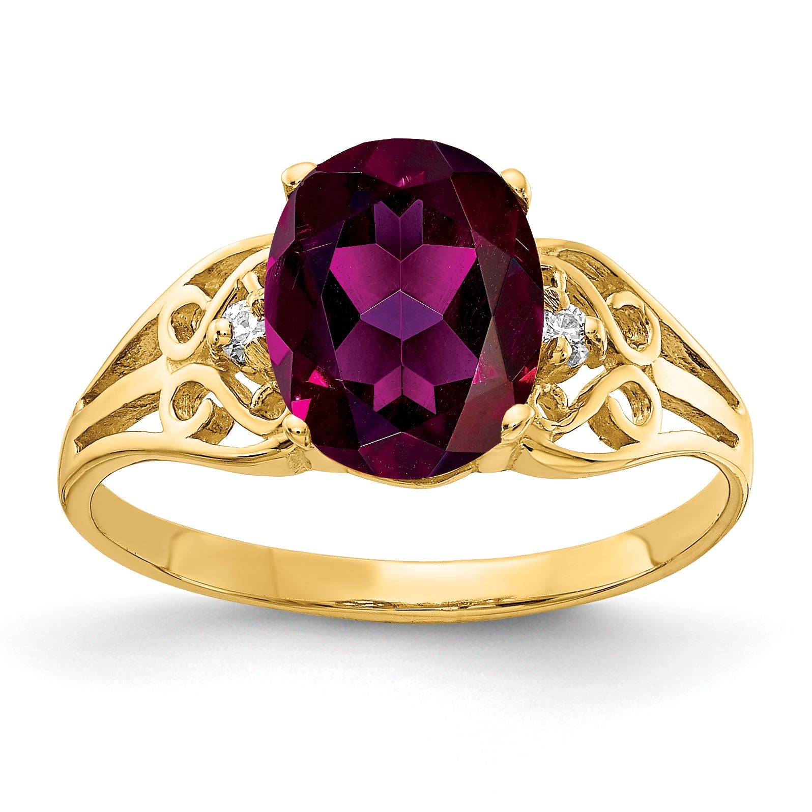 Solid 14k Yellow Gold 9x7mm Oval Rhodolite Simulated Garnet AA CZ Ring