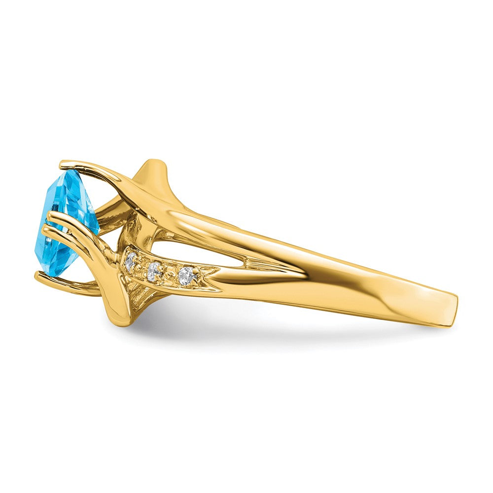 Solid 14k Yellow Gold Simulated Blue Topaz and CZ Ring