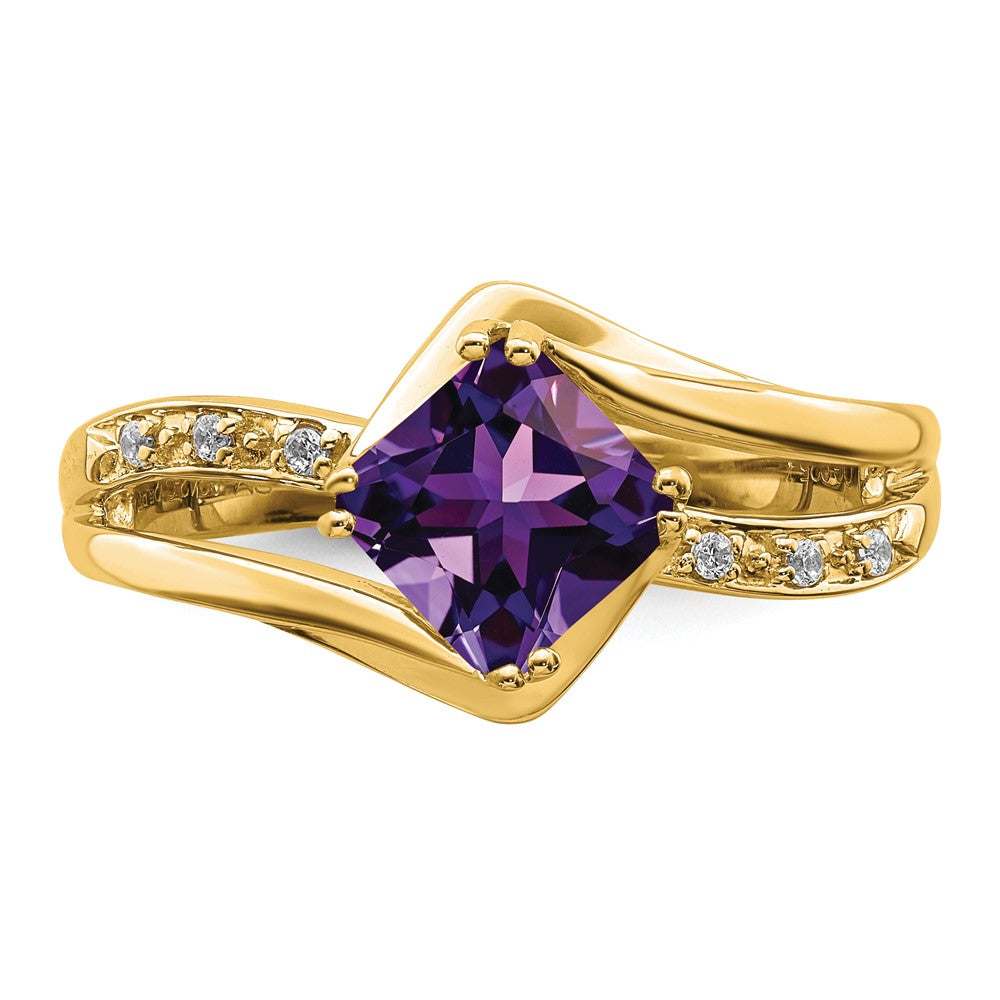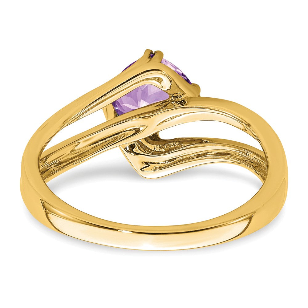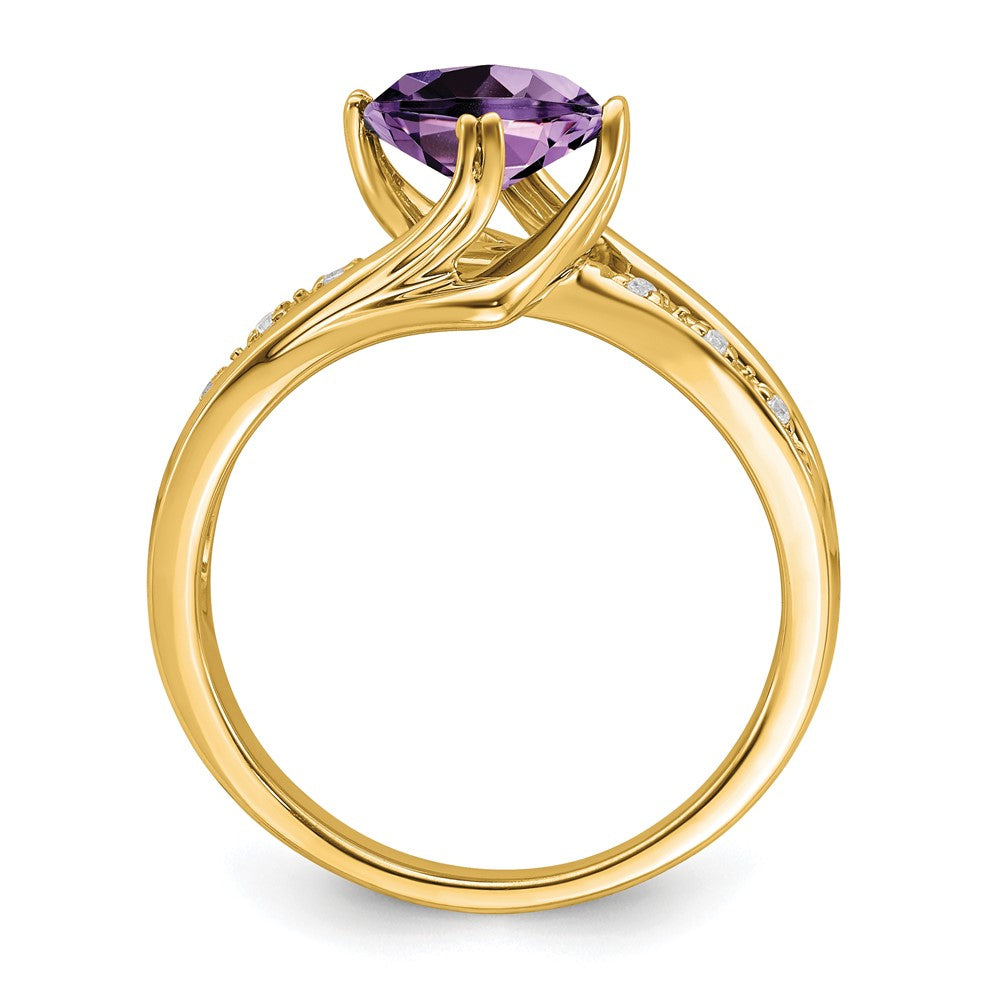 Solid 14k Yellow Gold Simulated Amethyst and CZ Ring