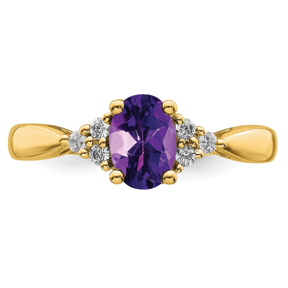 Solid 14k Yellow Gold Simulated Amethyst and CZ Ring