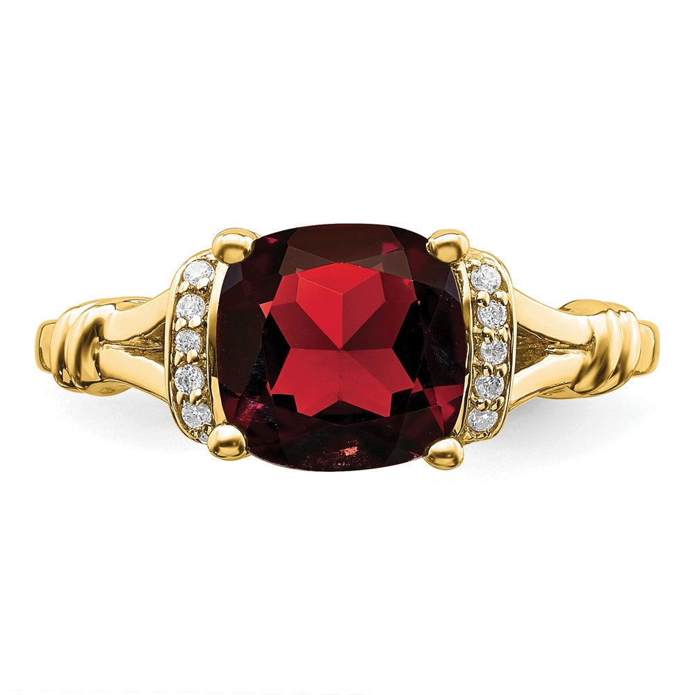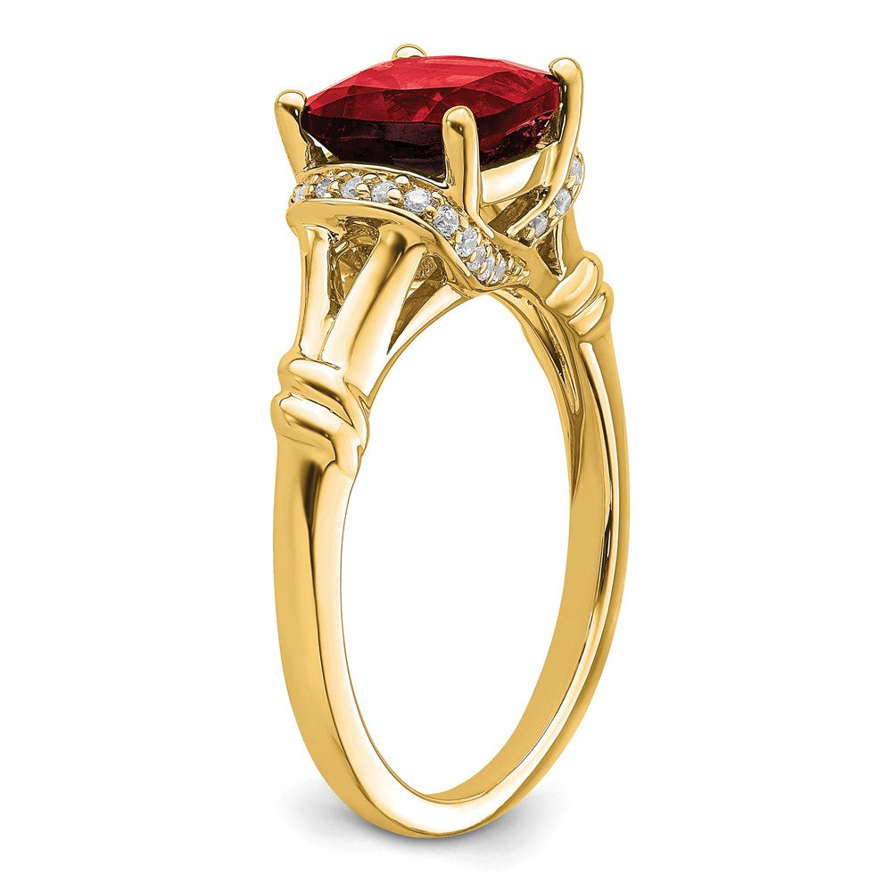 Solid 14k Yellow Gold Simulated Garnet and CZ Ring