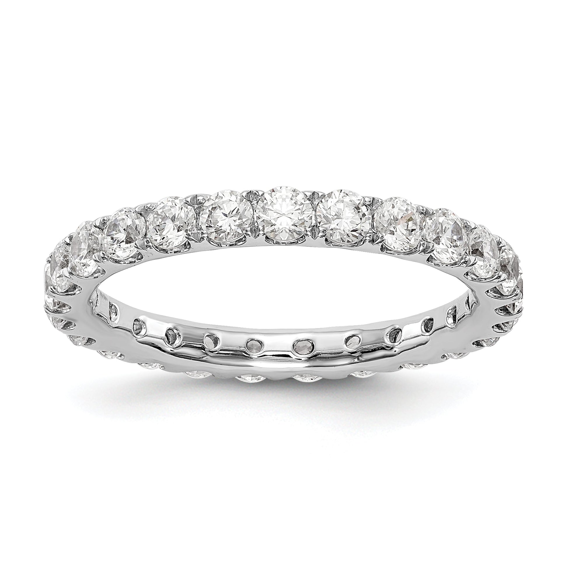 This breathtaking ring is made from high-quality materials, guaranteeing long-lasting durability. It has 25 stunning CZ stones, totaling 1 1/2 CT, and weighs just 0.06 ct, I1 (AA) clarity. The ring is complete, with all stones included, is not sizeable, and is an eternity wedding band ring. This ring creation method is synthetic and plated with Rhodium. Jewelry type is rings, and it's sold by unit each. Material primary-color is white.