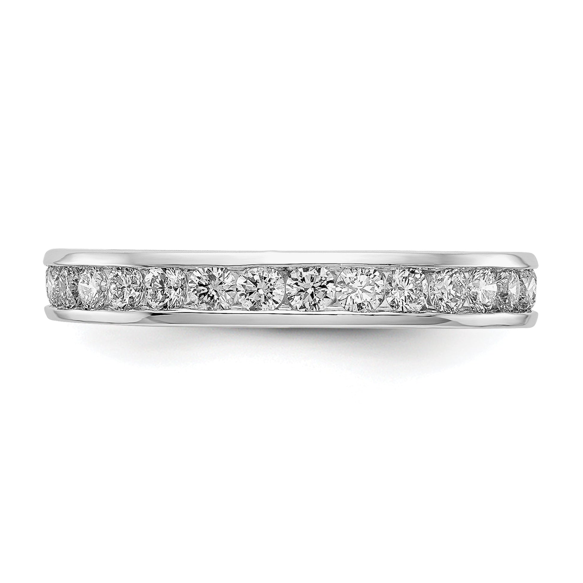 With a band width of 3.2mm and crafted with a polished finish, this ring is complete with all stones included and is not sizeable. The stone size is 2mm and the band thickness is <2mm. The product weighs one gram and is sold individually. The stone creation method is synthetic, and the piece goes well with any outfit. Order the 'Solid Real 14k White Gold Polished 1ct Channel Set CZ Eternity Wedding Band Ring' today and add it to your collection of jewelry!
