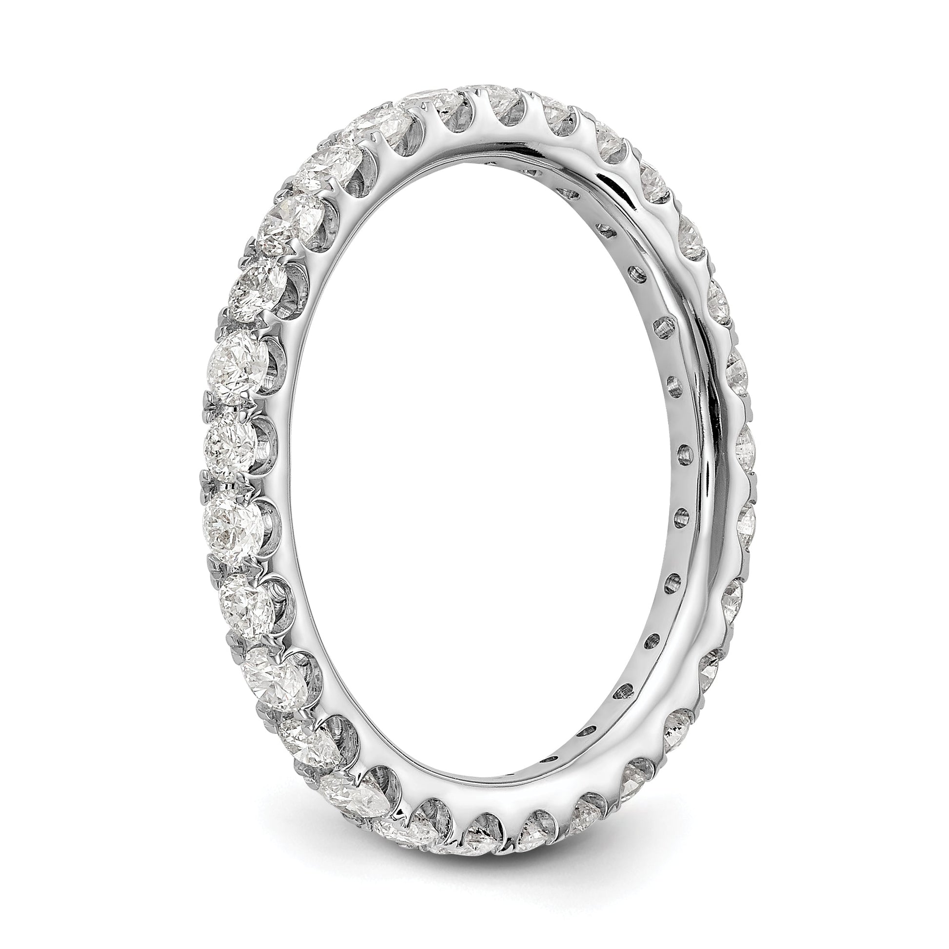 This is a wedding ring made of genuine 14k white gold that has been polished to a high shine. It features 29 hand-set cubic zirconia stones that sparkle beautifully. If you prefer, the ring can also be made with natural diamonds instead of cubic zirconia. It comes with a 30-day money-back guarantee and a gift box. This ring is a perfect gift for a special occasion or just as a way to show your love.