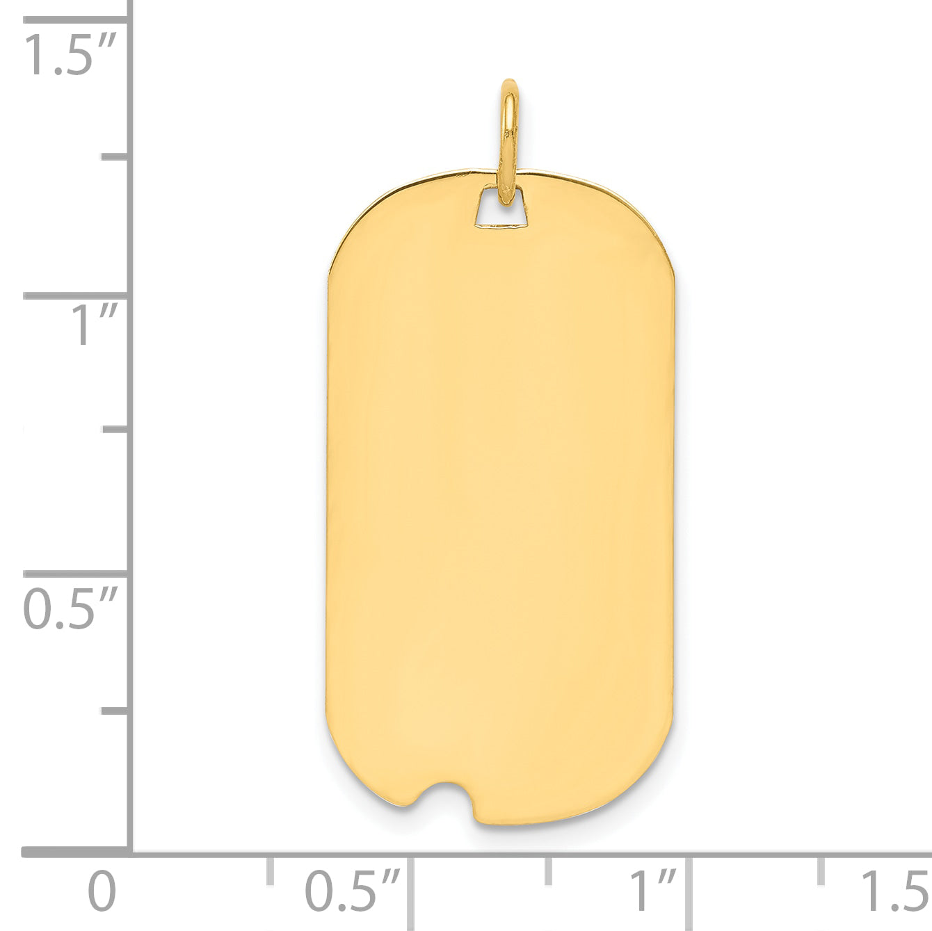 The stunning Gold Plated Sterling Silver Engravable Dog Tag Disc Charm elevates any jewelry collection. Crafted from 925 sterling silver, it features a polished gold finish giving it a radiant, luxe touch. The charm impresses with its handy size, measuring 33 mm in length and 15 mm in width, making it perfect for an everyday accessory. Its flat back profile and notched edges ensure style and comfort. Engrave personal messages to create a unique keepsake. Experience charm and elegance with this Gold Plated Sterling Silver Engravable Dog Tag—ideal for expressing individuality.