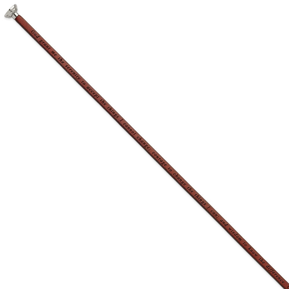 The Stainless Steel Amen Serenity Prayer Brown Leather Wrap Bracelet exudes modern charm and deep significance. With a polished finish and 23.5-inch length, this wrap bracelet combines rich brown leather with sturdy stainless steel. Its 5mm wide leather strap offers both flexibility and style. The magnetic clasp ensures easy wear, making it a perfect gift for any occasion. The Amen Serenity Prayer adds a touch of spiritual elegance, making this bracelet not just an accessory, but a meaningful statement. The Stainless Steel Amen Serenity Prayer Brown Leather Wrap Bracelet is presented in a lovely gift box, ready to inspire.