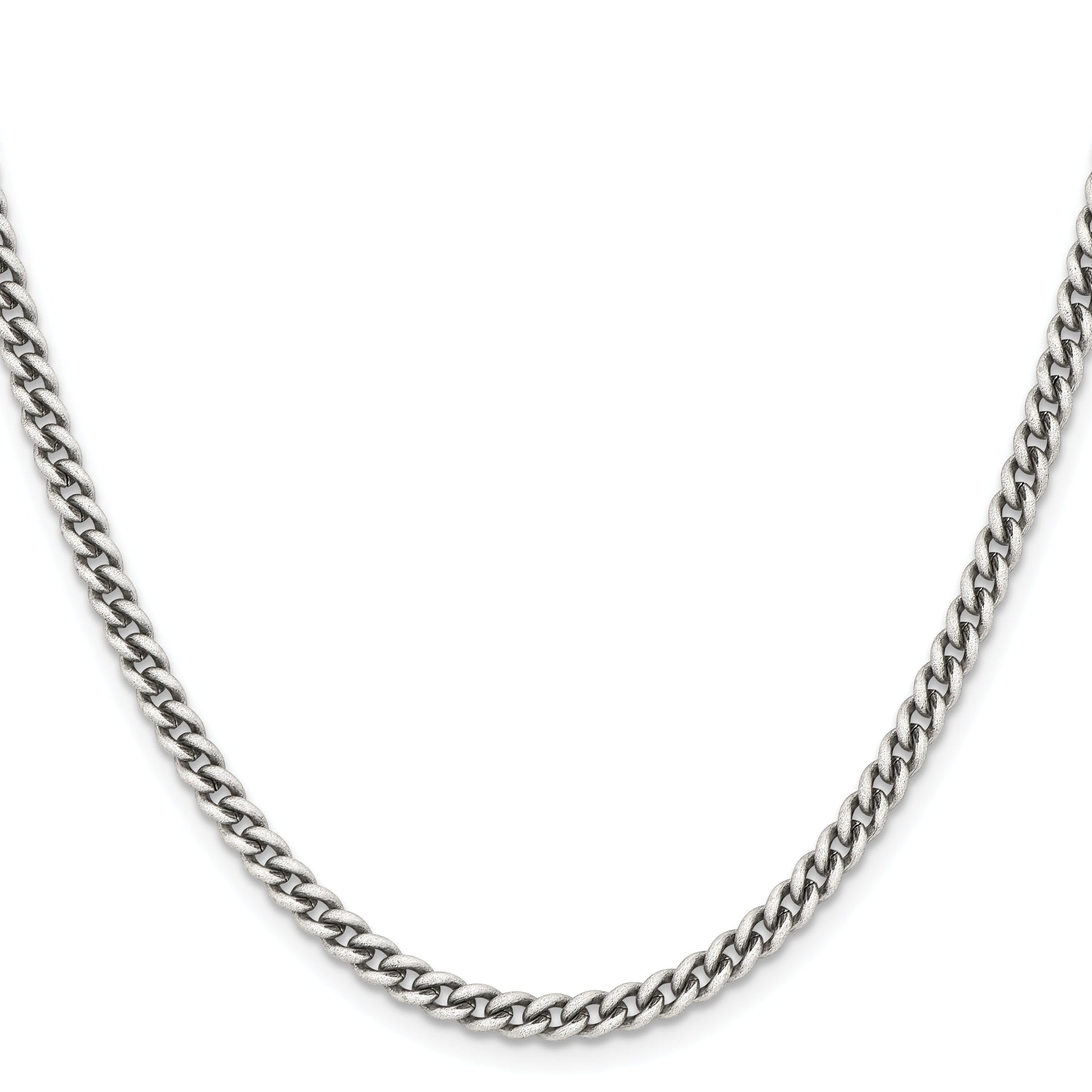 The Stainless Steel Chisel Antiqued 4mm 22 Inch Round Curb Chain offers a fusion of style and durability. Made from stainless steel, this chain features both polished and antiqued finishes that stand out in any collection. This 22-inch chain, with its 4mm width, brings an edgy, robust vibe suitable for any outfit. The sturdy lobster clasp ensures a secure fit, perfect for daily wear. Wrapped elegantly in a gift pouch, this necklace makes an excellent gift choice. Elevate your style with the Stainless Steel Chisel Antiqued Round Curb Chain and leave a lasting impression.