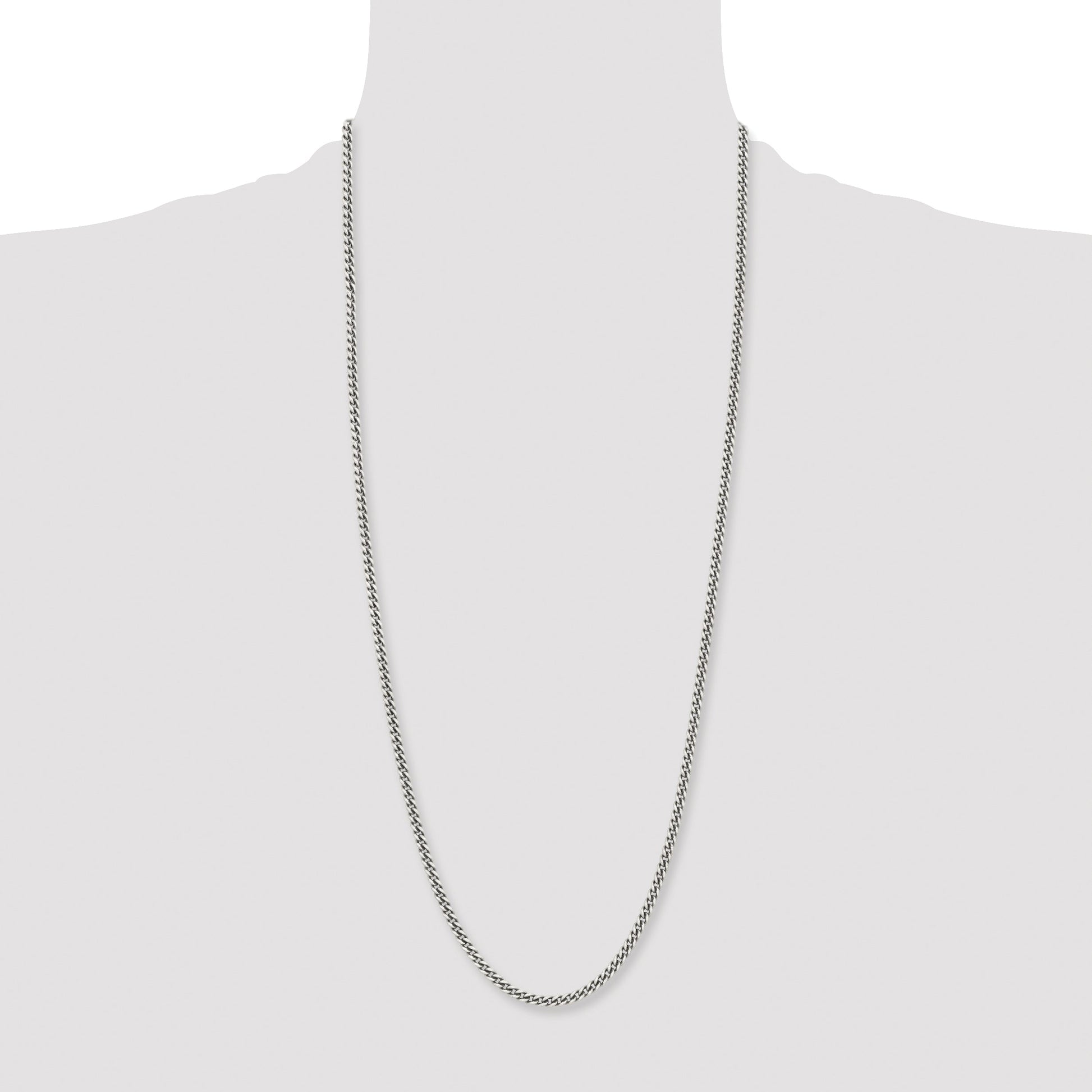 The Stainless Steel Chisel Antiqued 4mm 30 Inch Round Curb Chain speaks to those with a keen eye for timeless style. Crafted from durable stainless steel, this necklace combines a polished and antiqued finish for an eye-catching look. Its 30-inch length lets it rest gracefully, perfect for layering or wearing solo. The 4mm width offers a subtle yet significant statement, complemented by a fancy lobster clasp for secure wear. Packaged in a gift pouch, this unisex necklace makes an elegant gift for any occasion. The Stainless Steel Chisel Antiqued Curb Chain defines classic sophistication.