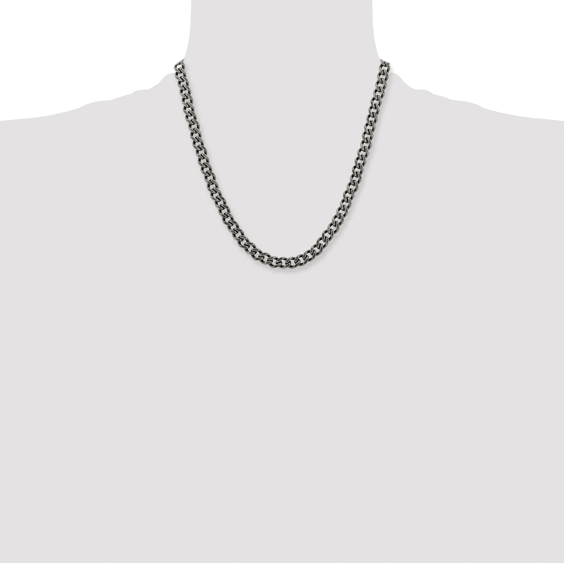 The Stainless Steel Chisel Oxidized 7.5mm 20 Inch Curb Chain radiates sleek elegance and style. This classic piece blends polish with antique touch, offering a unique look. Measuring a comfortable 20 inches in length with a 7.5 mm width, it suits any wardrobe effortlessly. Its curb chain style adds timeless appeal while the robust lobster clasp ensures secure wear. Made of stainless steel, it promises durability and long-lasting shine. This necklace comes packed in a gift pouch, making it a perfect present. The Stainless Steel Chisel Oxidized Chain is a standout for men seeking sophistication in jewelry.