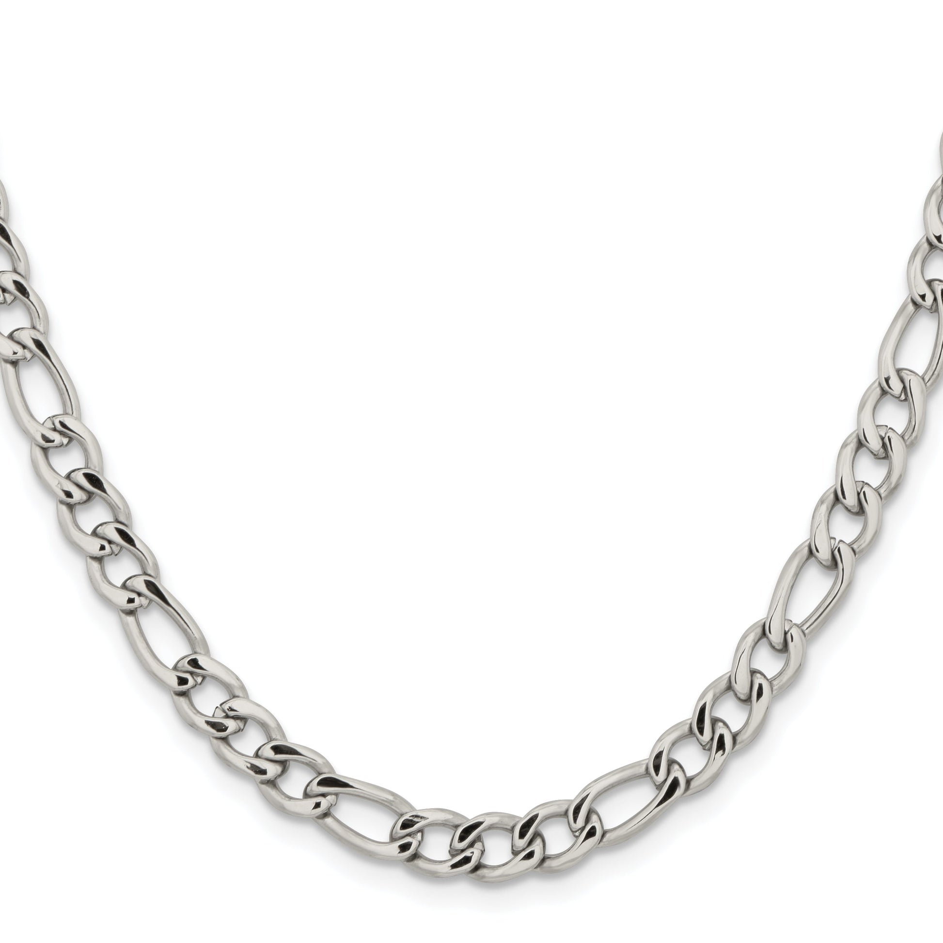 Discover elegance with the Stainless Steel Chisel Polished 5.3mm 20 Inch Figaro Chain. This necklace shines with a polished finish and offers a classic 5.3mm width Figaro style, perfect for those who appreciate timeless style. Its 20-inch length flatters any neckline, while the fancy lobster clasp ensures security and ease of wear. Crafted in stainless steel, it promises durability and a brilliant white sheen. Packaged in a chic gift pouch, this chain is an ideal gift for the modern man. Elevate your everyday look with the Stainless Steel Chisel Polished 5.3mm 20 Inch Figaro Chain.