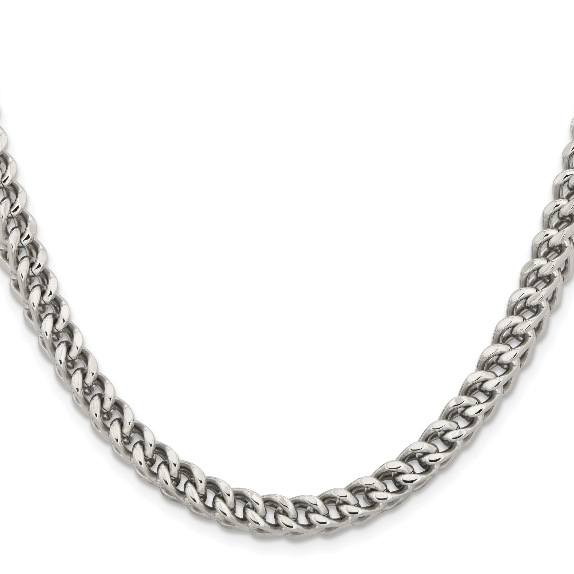The Stainless Steel Chisel Polished Franco Chain is a standout piece in any jewelry collection. Measuring 24 inches long with a width of 6.75 mm, this chain beautifully complements any neckline. The Franco chain design, paired with a polished finish, gives it a sleek and stylish look. Built with stainless steel, it guarantees durability and retains its shine. The lobster clasp ensures secure wear, making it perfect for everyday use. Packaged in a gift pouch, it makes for an impressive gift. The Stainless Steel Chisel Polished 6.75mm 24 Inch Franco Chain is tailored for those who appreciate both elegance and strength.