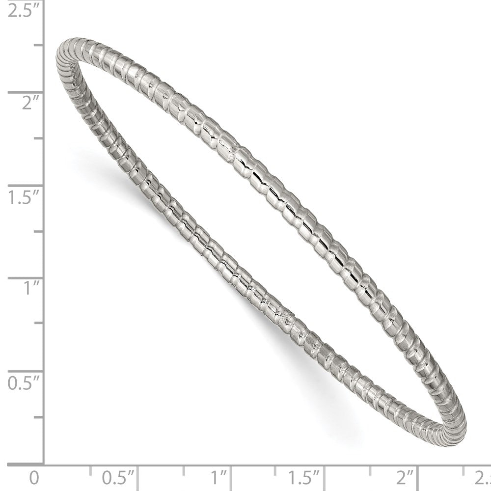 Introducing the Stainless Steel Chisel Polished and Textured 3mm Bangle, a sleek piece of fine jewelry that effortlessly combines modern design with classic charm. This women's bracelet features a brushed finish, giving it a subtle yet sophisticated look. At 8.25 inches long, it offers a comfortable fit for most wrists. The slip-on-style ensures easy wear without the hassle of clasps. Crafted from durable stainless steel, this bangle promises longevity and enduring shine. The textured surface adds an engaging touch, making it a standout accessory. It arrives in a stylish gift pouch, ready for gifting. The Stainless Steel Chisel Polished and Textured 3mm Bangle is a versatile addition to any jewelry collection.