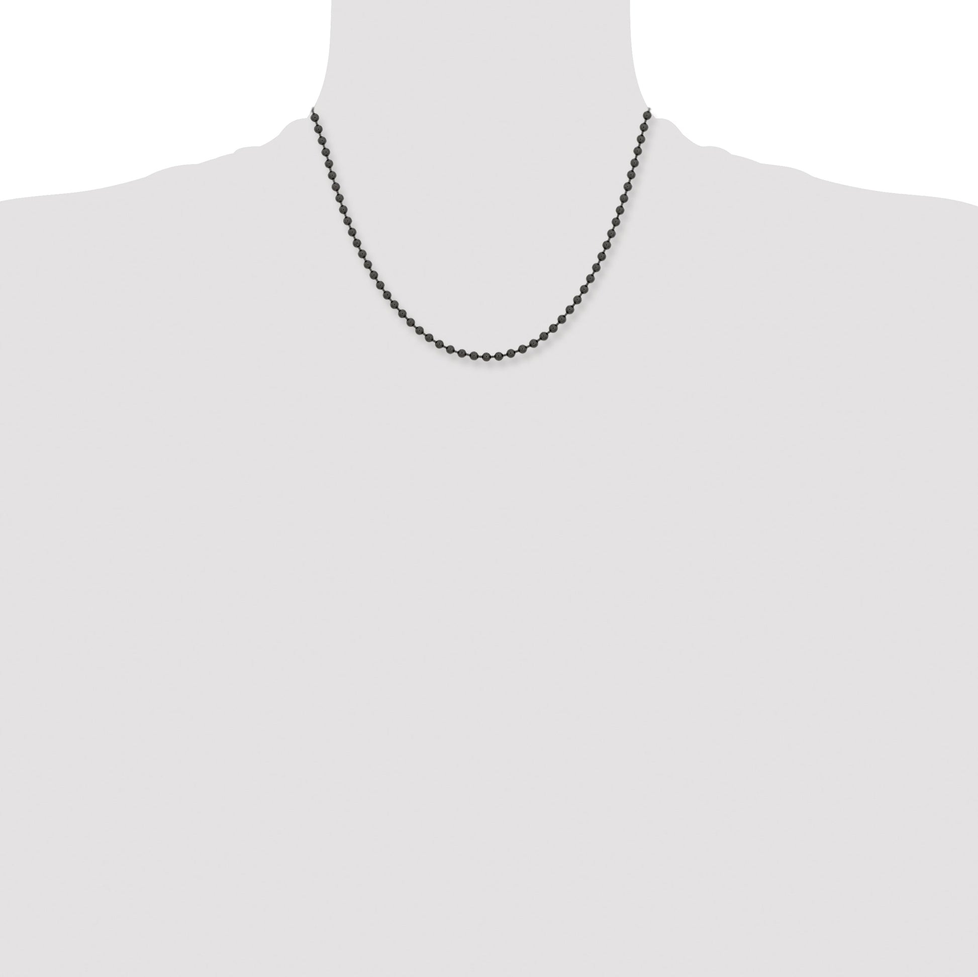Introducing the Stainless Steel Chisel Polished Black IP-Plated 2.4mm 18-Inch Ball Chain, a chic choice for any jewelry lover. This robust necklace, crafted from stainless steel, showcases a polished finish with a sleek black IP-plated layer that adds a modern touch. It's 18 inches in length and features a distinct 2.4mm ball design, making it a versatile accessory for any outfit. The lobster clasp secures the chain with ease and style. Delivered in a gift pouch, the Stainless Steel Chisel Polished Black IP-Plated Ball Chain is perfect for adding a subtle edge to your look.