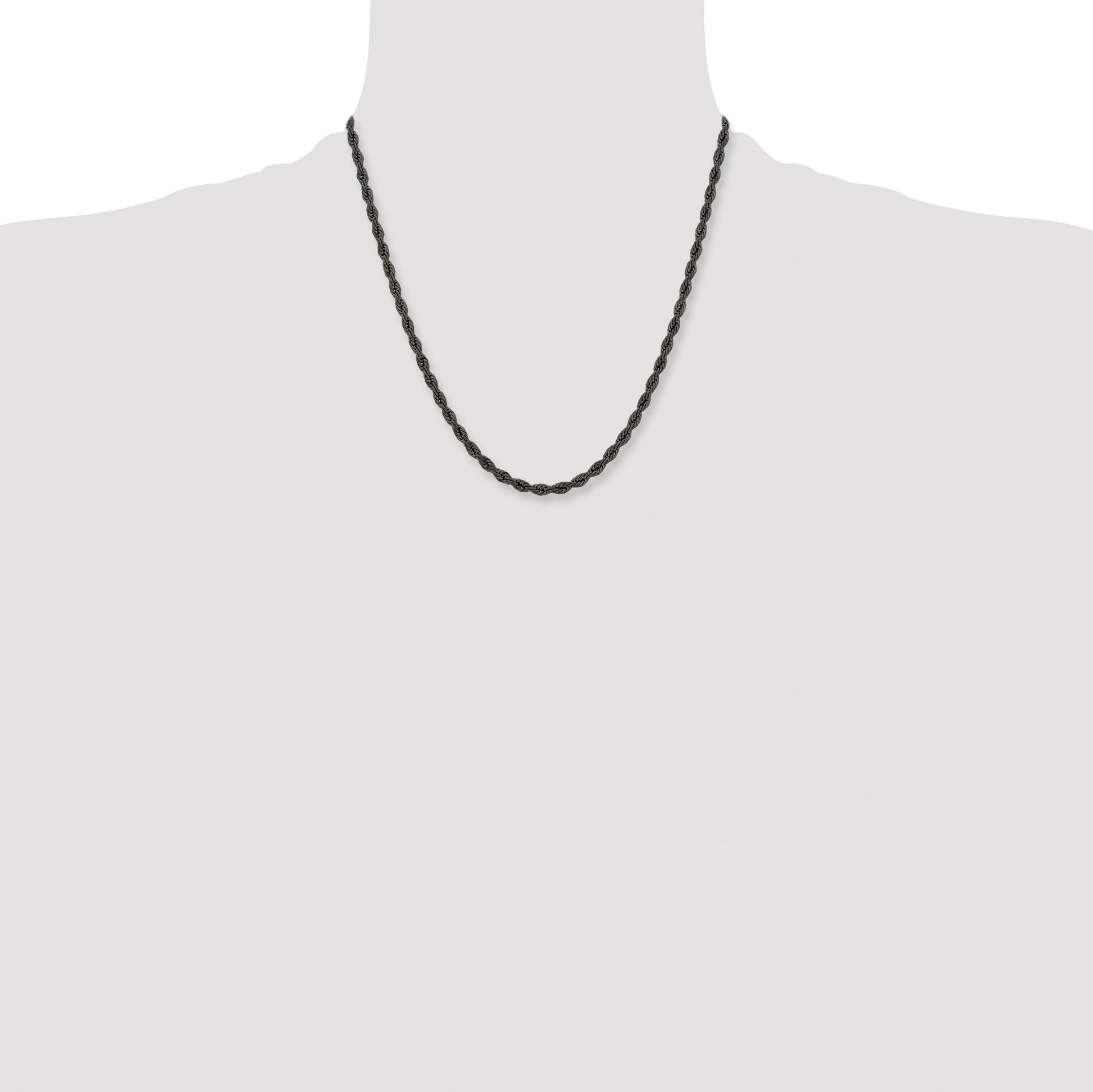 The Stainless Steel Chisel Polished Black IP-Plated 4mm 20 Inch Rope Chain is a real beauty. This necklace is crafted from durable stainless steel and flaunts a glossy finish. The chain spans 20 inches, suitable for both men and women. Its rope design adds an edgy twist and measures 4 mm in width. This jewelry piece comes with a robust lobster clasp, ensuring it stays secure. Packaged with care in a stylish gift pouch, the Stainless Steel Chisel Polished Black IP-Plated 4mm 20 Inch Rope Chain makes a thoughtful gift or a solid choice for your own collection.