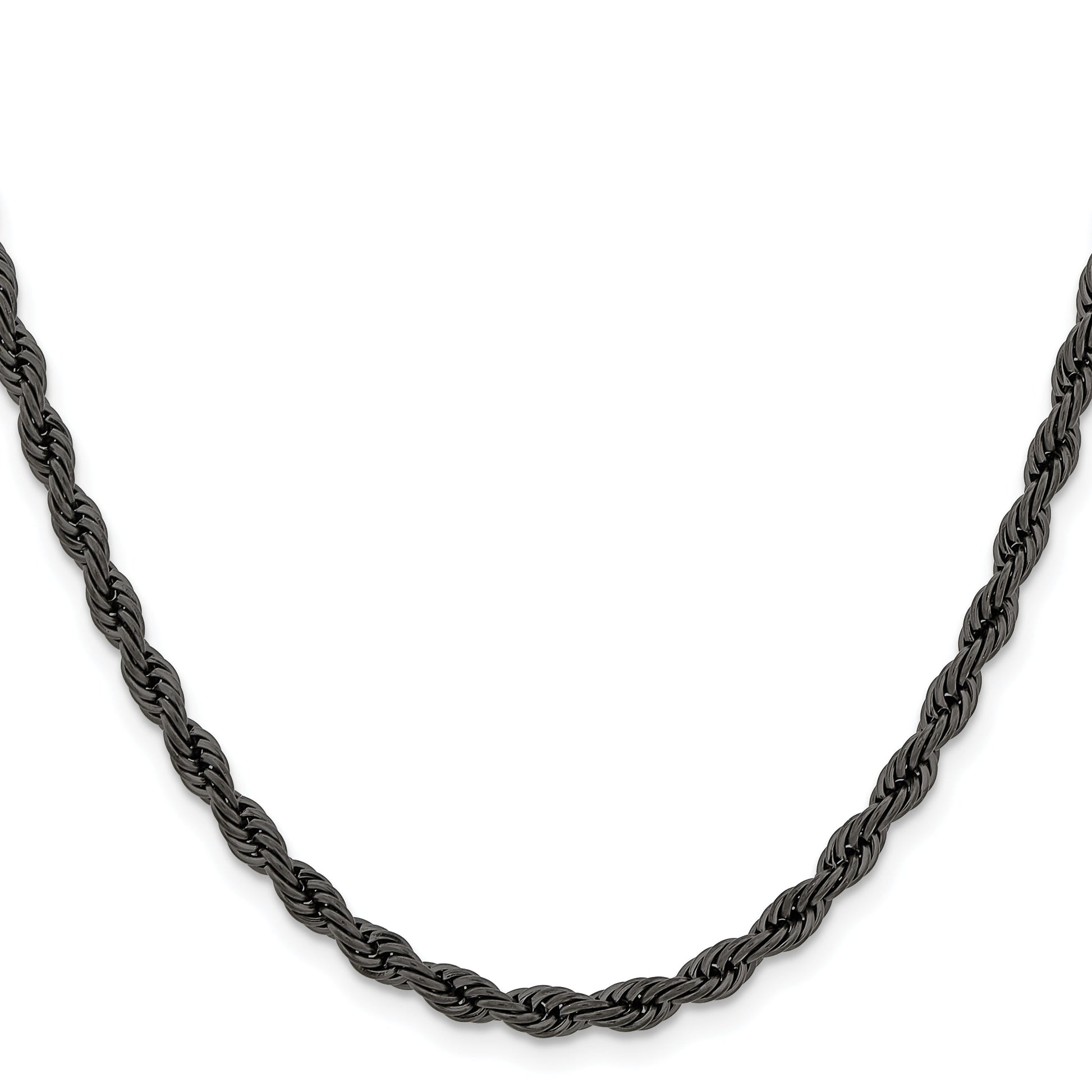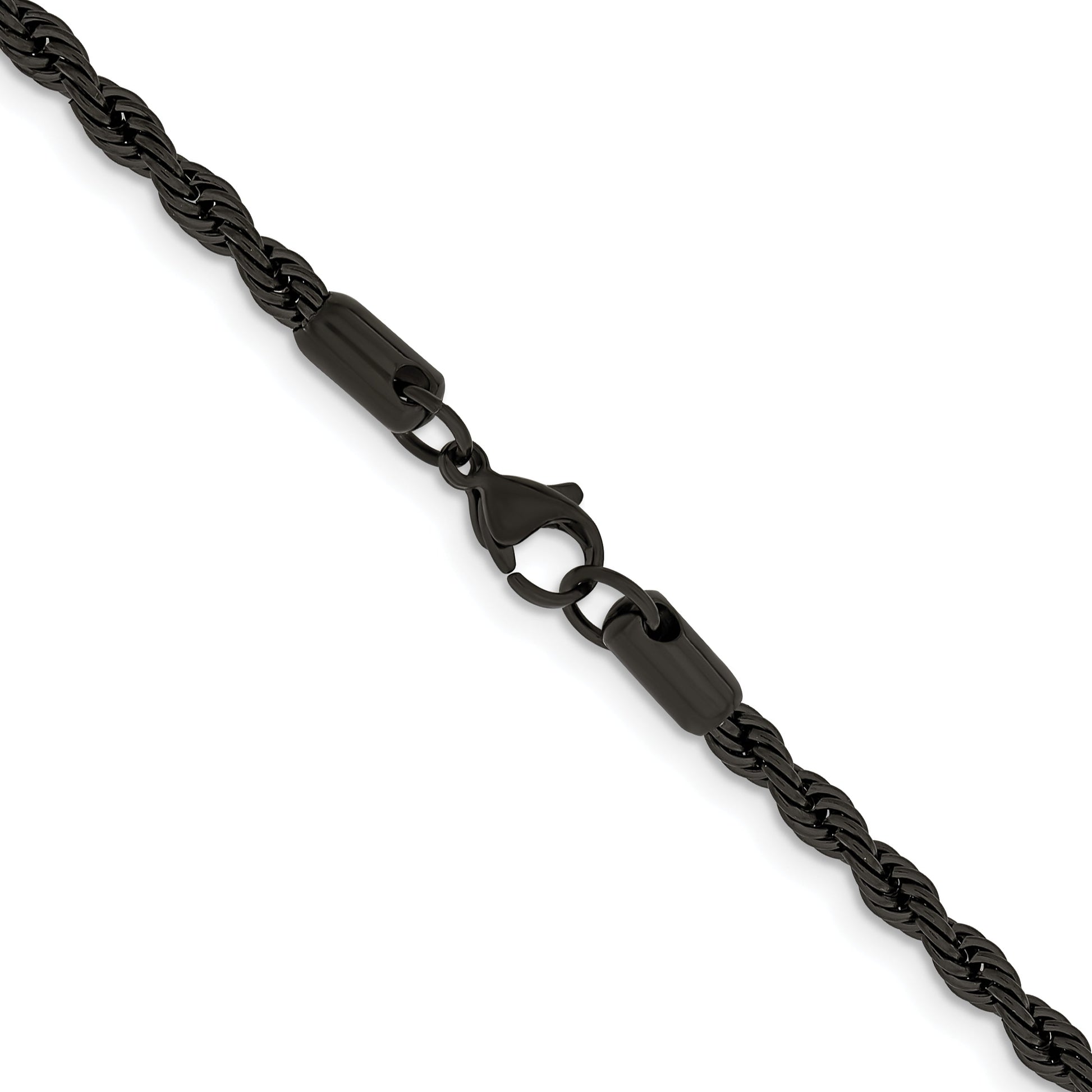 The Stainless Steel Chisel Polished Black IP-Plated 4mm 24-Inch Rope Chain is a stunning piece of jewelry designed to impress both men and women. Crafted from durable stainless steel, this chain boasts a sleek black IP plating that heightens its elegance. The 4mm wide rope chain provides a classic yet modern look, making it suitable for any outfit. A high-quality lobster clasp ensures a secure fit. Measuring 24 inches in length, it sits perfectly around your neck. The Stainless Steel Chisel Polished Black IP-Plated 4mm 24-Inch Rope Chain arrives in a gift pouch, ready for gifting or personal enjoyment.