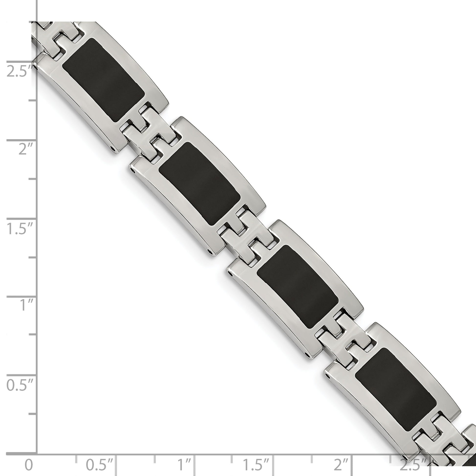 The Stainless Steel Chisel Polished with Black Enamel 9 Inch Link Bracelet adds bold style to any wardrobe. This men’s bracelet, crafted in polished stainless steel, features striking black enamel accents. These links, spanning 9 inches, provide a strong visual impact, while an 11 mm width offers a robust look. A secure fold-over clasp keeps the bracelet safe on the wrist. It arrives thoughtfully gift-boxed, ready to impress. The Stainless Steel Chisel Polished with Black Enamel 9 Inch Link Bracelet makes a standout addition to any collection.