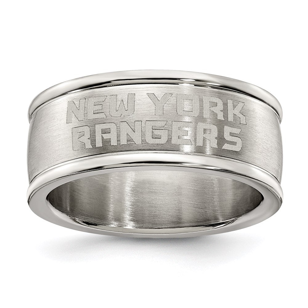 Show your team pride with the New York Rangers Stainless Steel Logo Band Ring, size 6. Crafted from durable stainless steel, this ring features the bold Rangers logo etched on a sleek white background. Perfect for fans who want a stylish and tough accessory, it offers strength and comfort all day long. Licensed by the NHL and made by LogoArt LLC, this piece makes a great gift or personal keepsake. The New York Rangers Stainless Steel Logo Band Ring is more than jewelry — it’s a symbol of your team spirit that lasts.