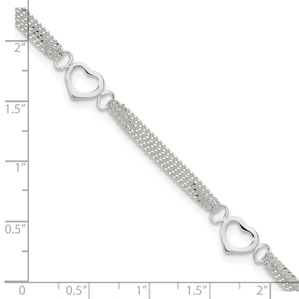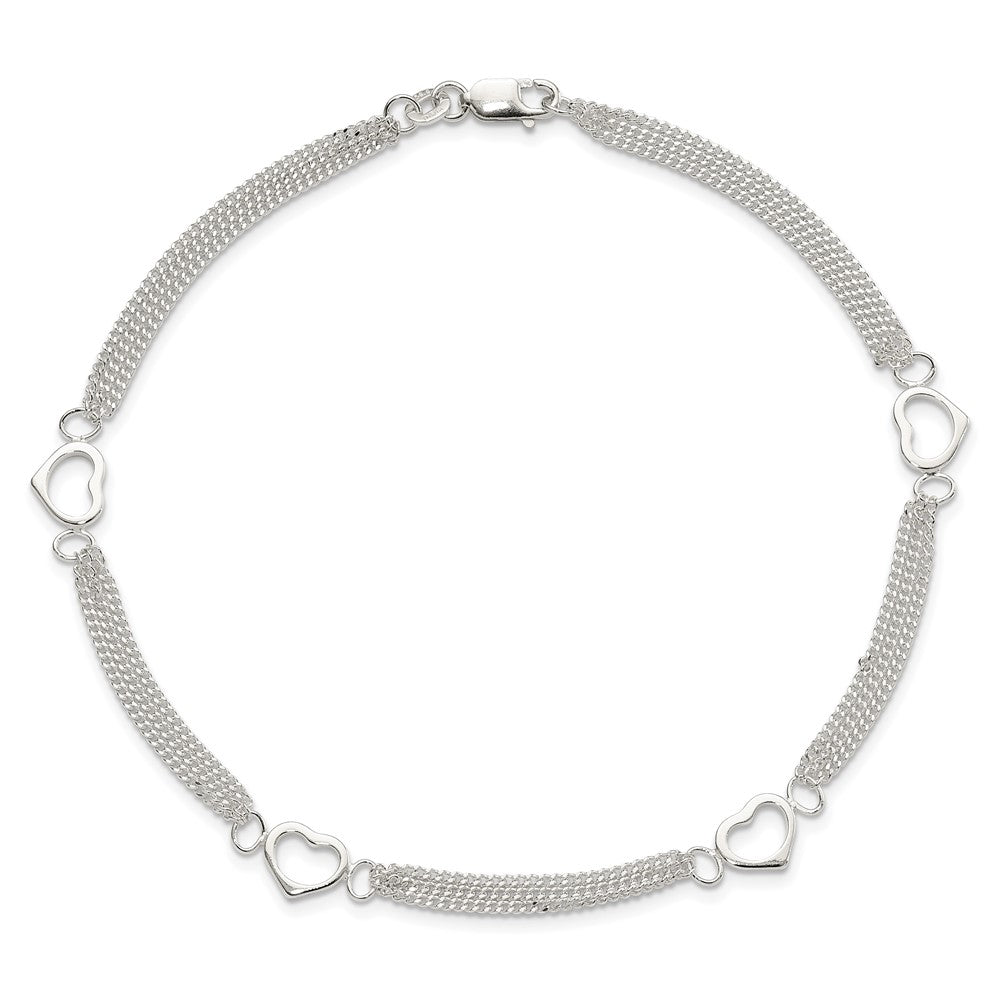 Introducing the Sterling Silver 10-Inch Polished Heart Anklet, a true gem for your ankle. This anklet boasts sleek 925 sterling silver, ensuring lasting luster with its polished finish and anti-tarnish coating. The 10-inch chain elegantly graces your ankle, marked by 7 mm heart charms that add playful style. The secure spring ring clasp keeps it snug. Whether dressing up or down, this anklet shines every time. Its solid build guarantees durability for everyday wear. Elevate your collection with this Sterling Silver 10-Inch Polished Heart Anklet. Perfect for any woman wanting to add a touch of grace to her style.