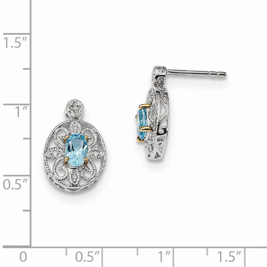 Introducing the Sterling Silver & 14K Sky Blue Topaz and Diamond Earrings, a perfect blend of elegance and charm for any occasion. Crafted with real sterling silver and 14K gold accents, these earrings showcase two stunning sky blue topaz stones, totaling 0.85 carats. Highlighting their beauty, the natural diamonds add a luxurious touch, with a total weight of 0.050 carats. The earrings measure 16mm in length and 4mm in width, offering a comfortable post and push back closure. Ideal as a birthstone piece, these drop and dangle earrings make a perfect gift. Elevate your jewelry collection with the Sterling Silver & 14K Sky Blue Topaz and Diamond Earrings today.