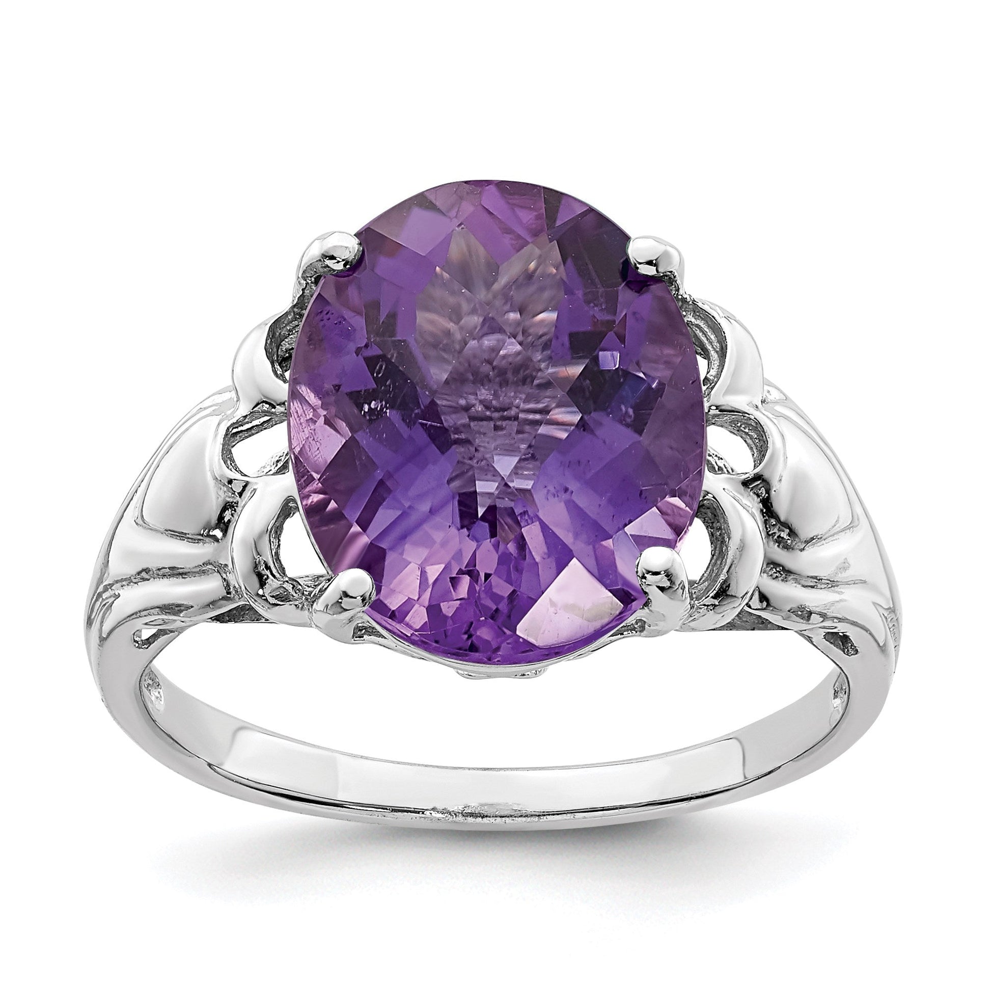 Sterling Silver 14K White Gold Plated Oval Checker-Cut Amethyst Gemstone Birthstone Ring Fine Jewelry Gift for Her