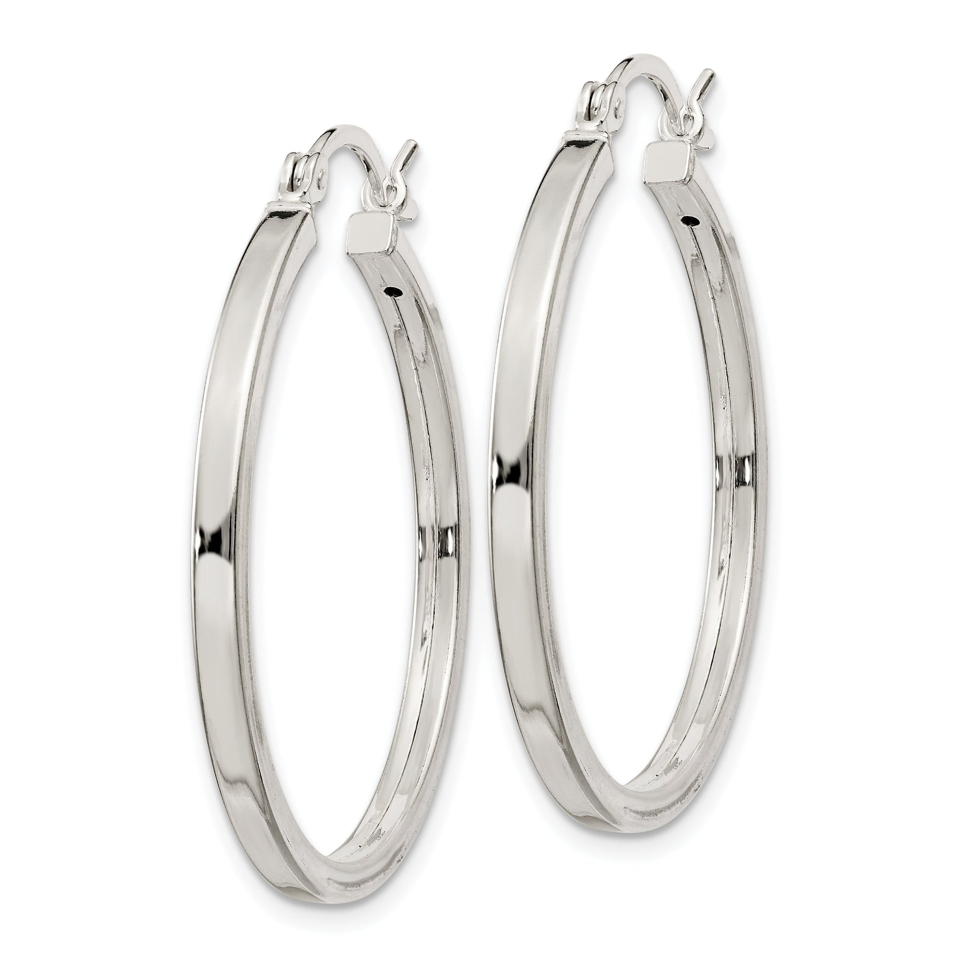 Discover the elegance of these Sterling Silver 2.5x30mm Polished Hoop Earrings. Crafted from high-quality 925 sterling silver, these earrings boast a brilliant polished finish and an anti-tarnish coating, ensuring lasting shine. The sleek hoops have a hollow design, making them lightweight for comfort while maintaining a bold look. Measuring 31mm in width and thickness of 2.5mm, they offer a modern touch to any ensemble. The wire and clutch closure ensures a secure fit. Elevate your accessory game with these Sterling Silver 2.5x30mm Polished Hoop Earrings, perfect for any style.