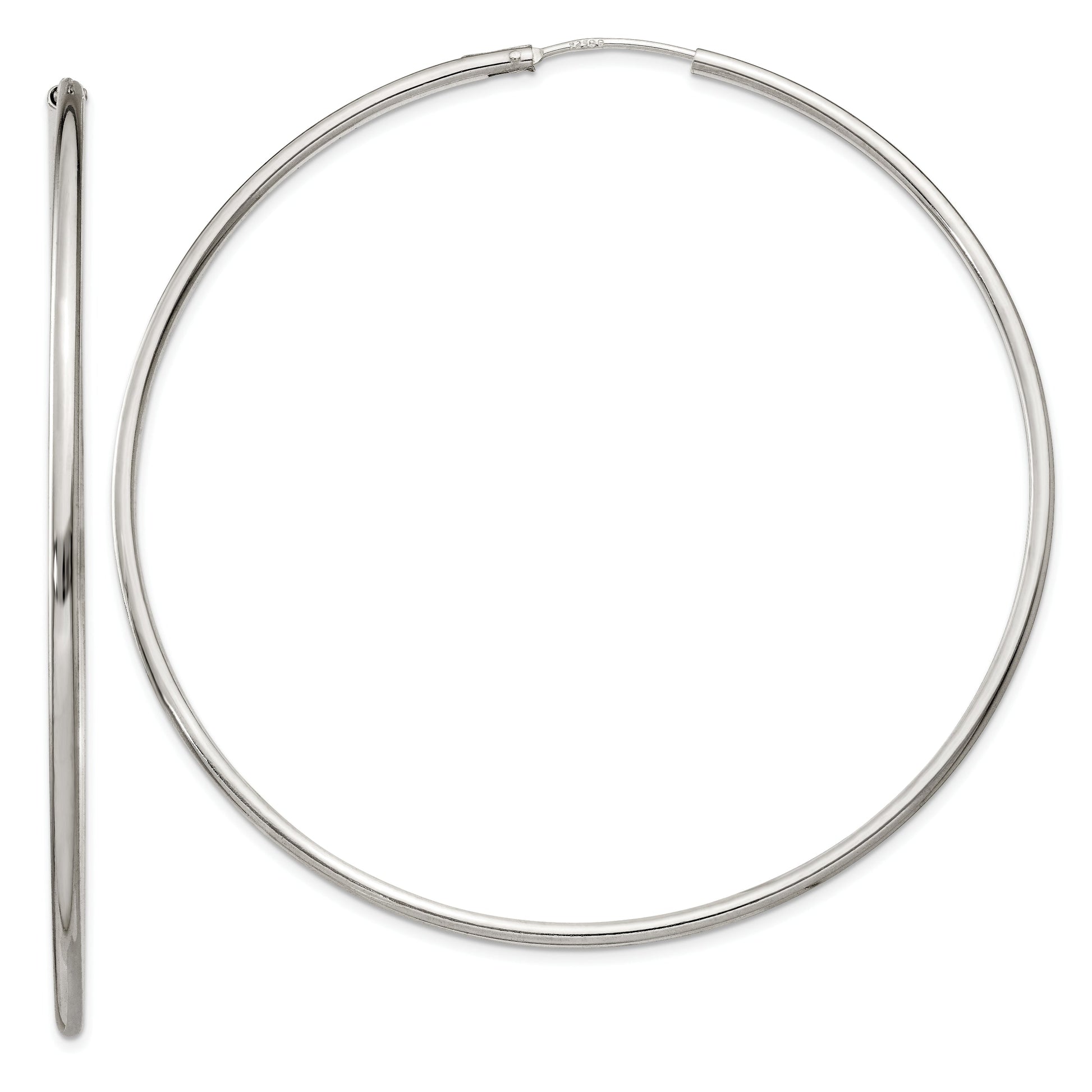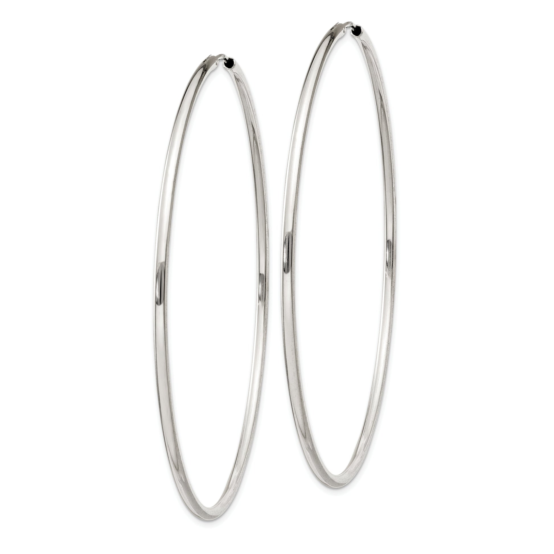 The Sterling Silver 2X70mm Endless Hoop Earrings offer elegance and charm with their polished 925 sterling silver finish. Expertly crafted through a precise casting process, these hoops boast a sleek 70mm diameter and a 2mm thickness. Designed for comfort and longevity, the anti-tarnish coating keeps them pristine, while the hollow construction ensures they remain lightweight, with each earring weighing only a few grams. The subtle hidden wire and catch closure enhance the seamless hoop style, ideal for any fashion-forward woman. Elevate your look with these timeless Sterling Silver 2X70mm Endless Hoop Earrings today.