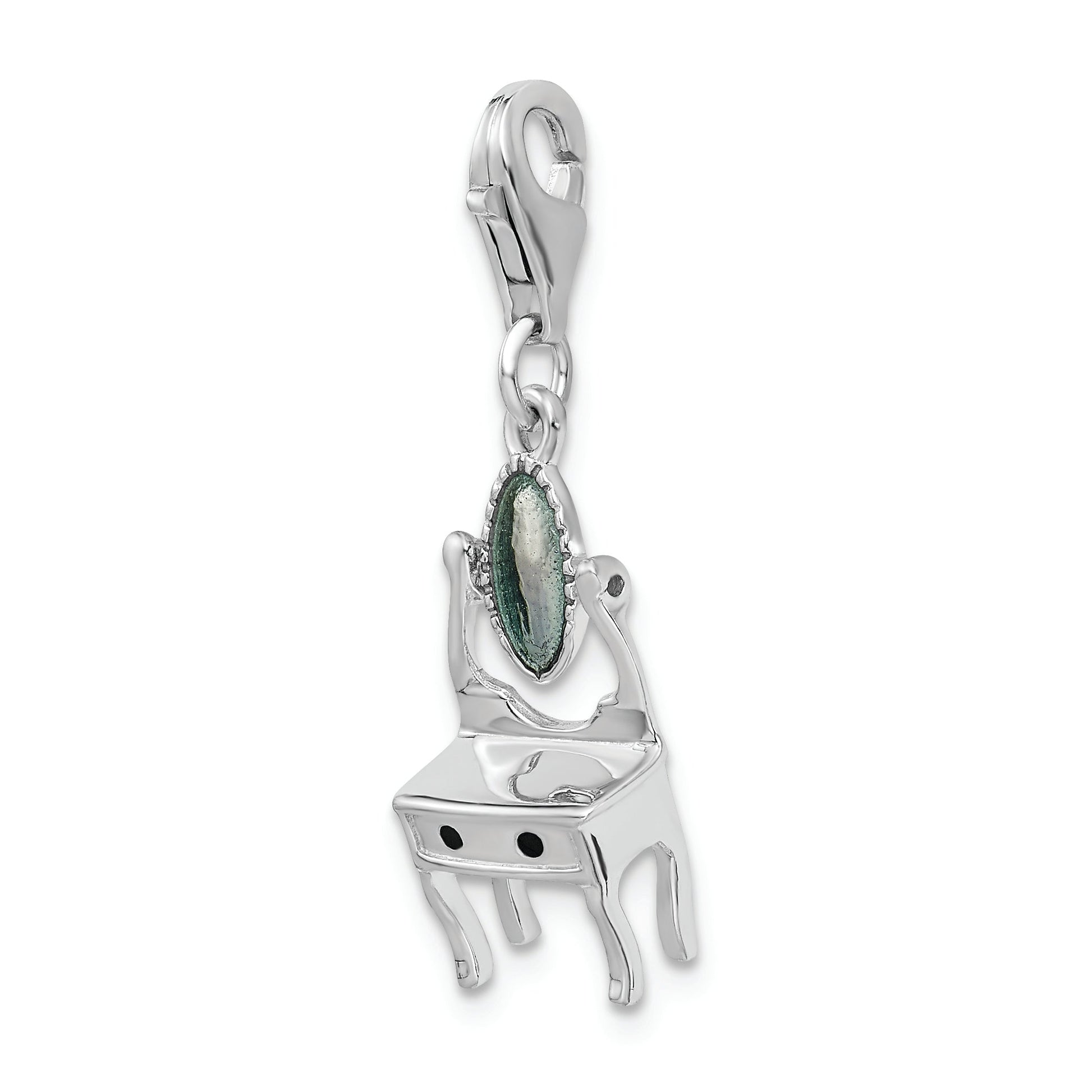 The Sterling Silver Amore La Vita Rhodium-Plated Vanity Charm showcases elegance and charm. Made from genuine 925 sterling silver with a sleek rhodium finish, this charm offers timeless allure. Delicately enamored in a striking shade of blue, it measures 37mm in length and 9mm in width, making it a perfect statement piece. Featuring a fancy lobster clasp for secure attachment, this 3D polished charm adds a playful touch to your jewelry collection with its moveable character. The Sterling Silver Amore La Vita Vanity Charm is a chic addition to any ensemble, combining style and grace effortlessly.
