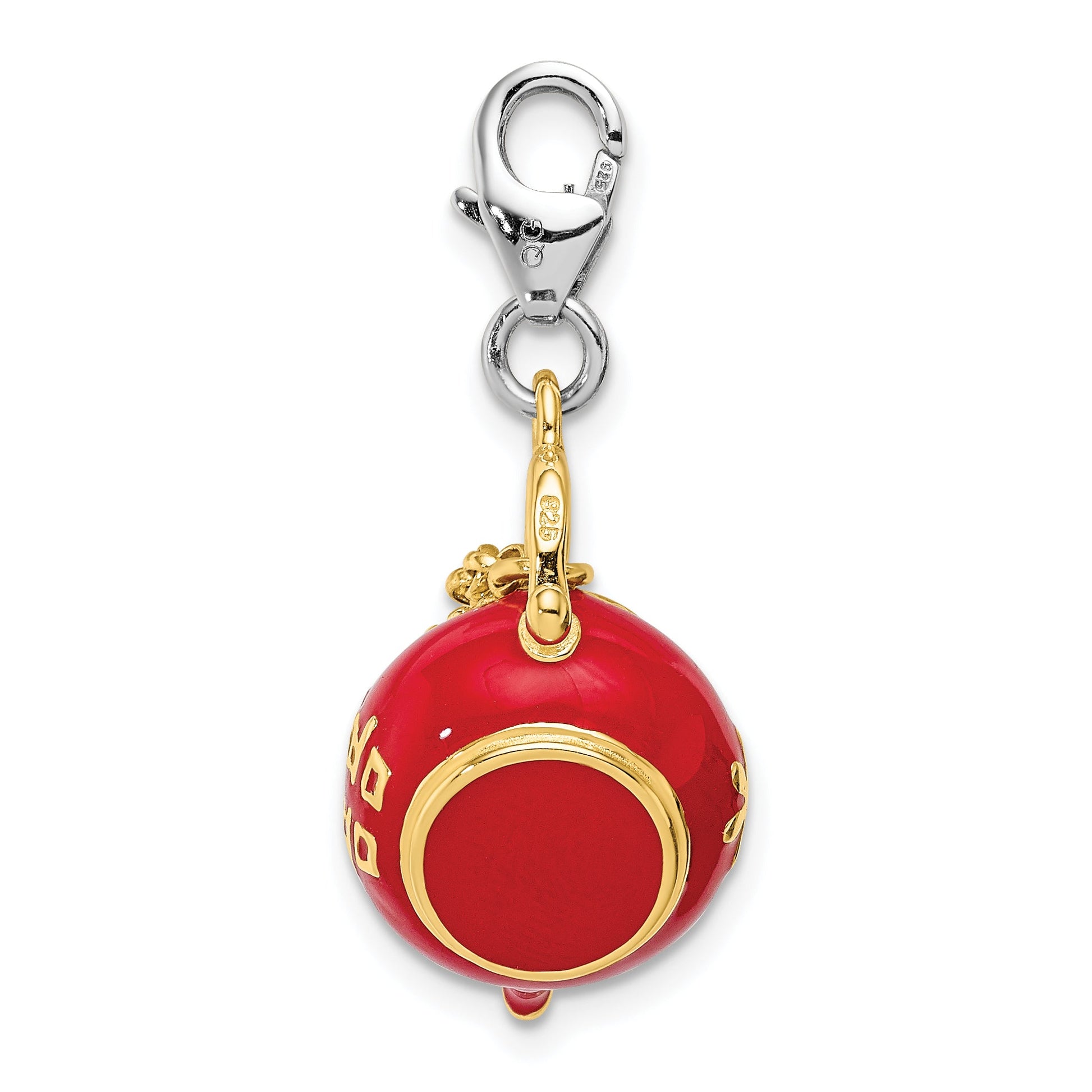The Sterling Silver Amore La Vita Tea Pot Charm is a stunning addition to any charm collection. Crafted with sterling silver for lasting beauty, this unique three-dimensional red enameled charm showcases intricate details. Rhodium and gold plating add a rich finish, enhancing its lively appeal. The sweet oriental teapot design moves, bringing life to your jewelry. It hangs from a lovely fancy lobster clasp, ensuring it stays secure on your bracelet or necklace. The Sterling Silver Amore La Vita Tea Pot Charm combines elegance with fun, making it a perfect gift for any charm lover.