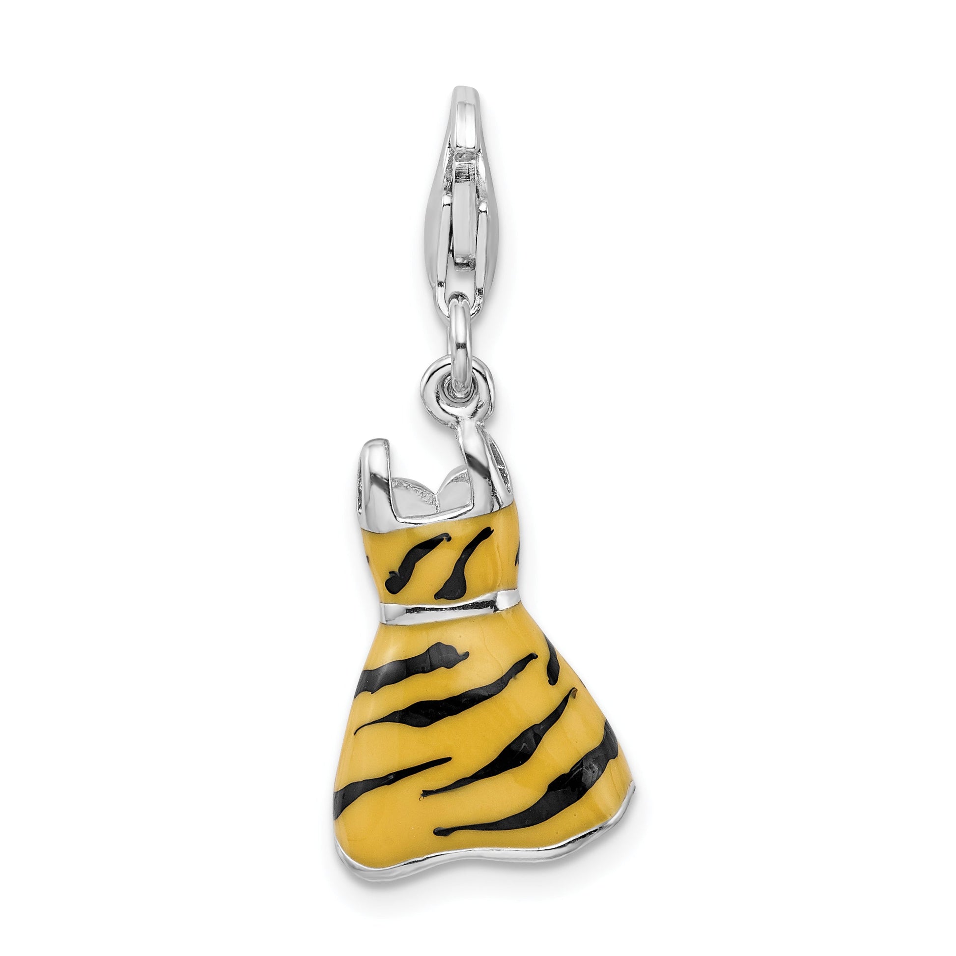 Meet the Sterling Silver Amore La Vita 3-D Enameled Tiger Dress Charm. This stunning charm captures attention with its intricate, lifelike design. Crafted from 925 sterling silver, it features a polished rhodium finish and delightful cubic zirconia accents. Each stone glimmers with the allure of natural diamonds. Thoughtfully cast with a vibrant black and yellow enamel design, it adds a playful touch. Measuring 31 mm in length and 12 mm in width, this charm has a chic lobster clasp for effortless attachment. The Sterling Silver Amore La Vita Charm, a blend of sophistication and whimsy, is ideal for anyone seeking to elevate their style with a touch of wild elegance.