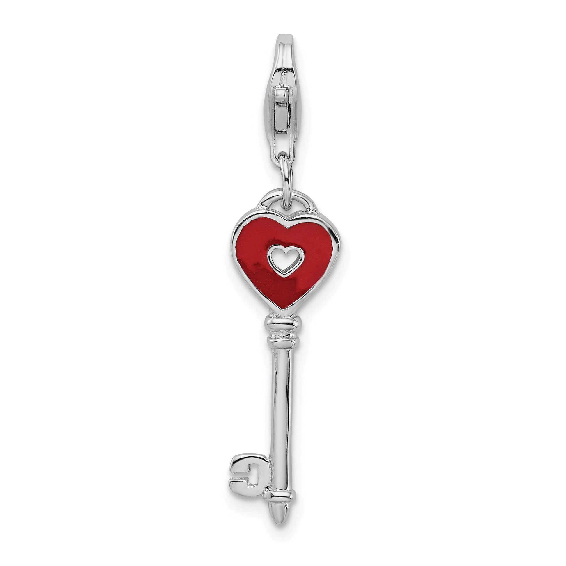 Capture the essence of romance with the Sterling Silver Amore La Vita Rhodium-Plated Heart Key Charm. This delightful piece, crafted from 925 sterling silver, offers a polished finish and a striking red enamel heart. The rhodium plating ensures a durable finish, while the 3D design adds depth and intrigue. Measuring 33 mm in length, this charm features a detailed key design with a fancy lobster clasp for easy attachment. Whether as a pendant or a charm, the Sterling Silver Amore La Vita Heart Key Charm is a standout piece that adds a touch of elegance to any collection.