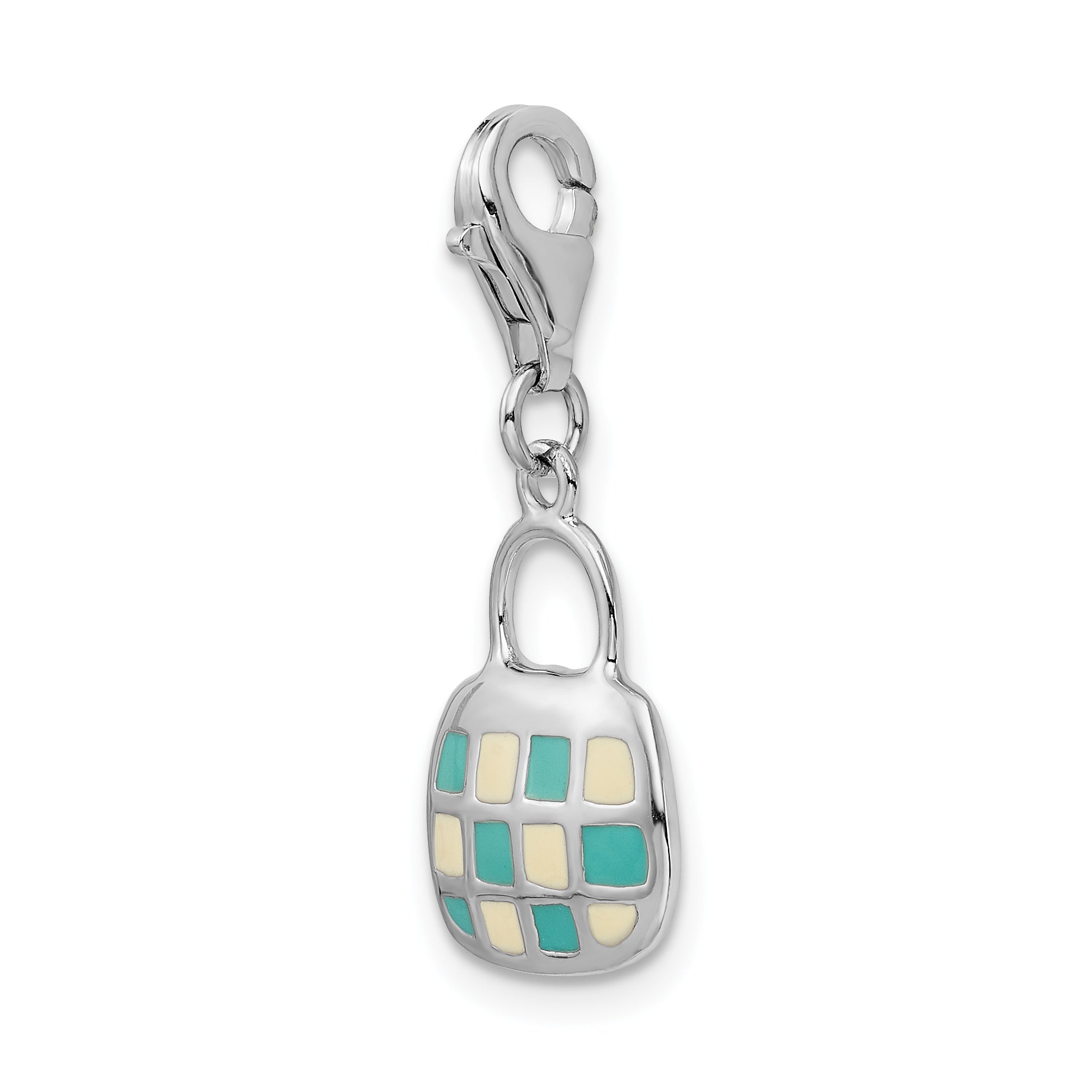 Add a sprinkle of charm to your collection with the Sterling Silver Amore La Vita Rhodium-Plated Polished 3-D Enameled Purse Charm. Crafted from genuine 925 sterling silver, this dazzling charm represents elegance at its finest. The rhodium plating imparts a shiny finish, while white and blue enamel accents uplift its allure. A sturdy lobster clasp offers secure attachment to any chain or bracelet, ensuring your style remains uninterrupted. Sized at 15 mm in length and 13 mm in width, this piece captivates with its detailed 3D design. Upgrade your jewelry box with the Sterling Silver Amore La Vita Purse Charm today!