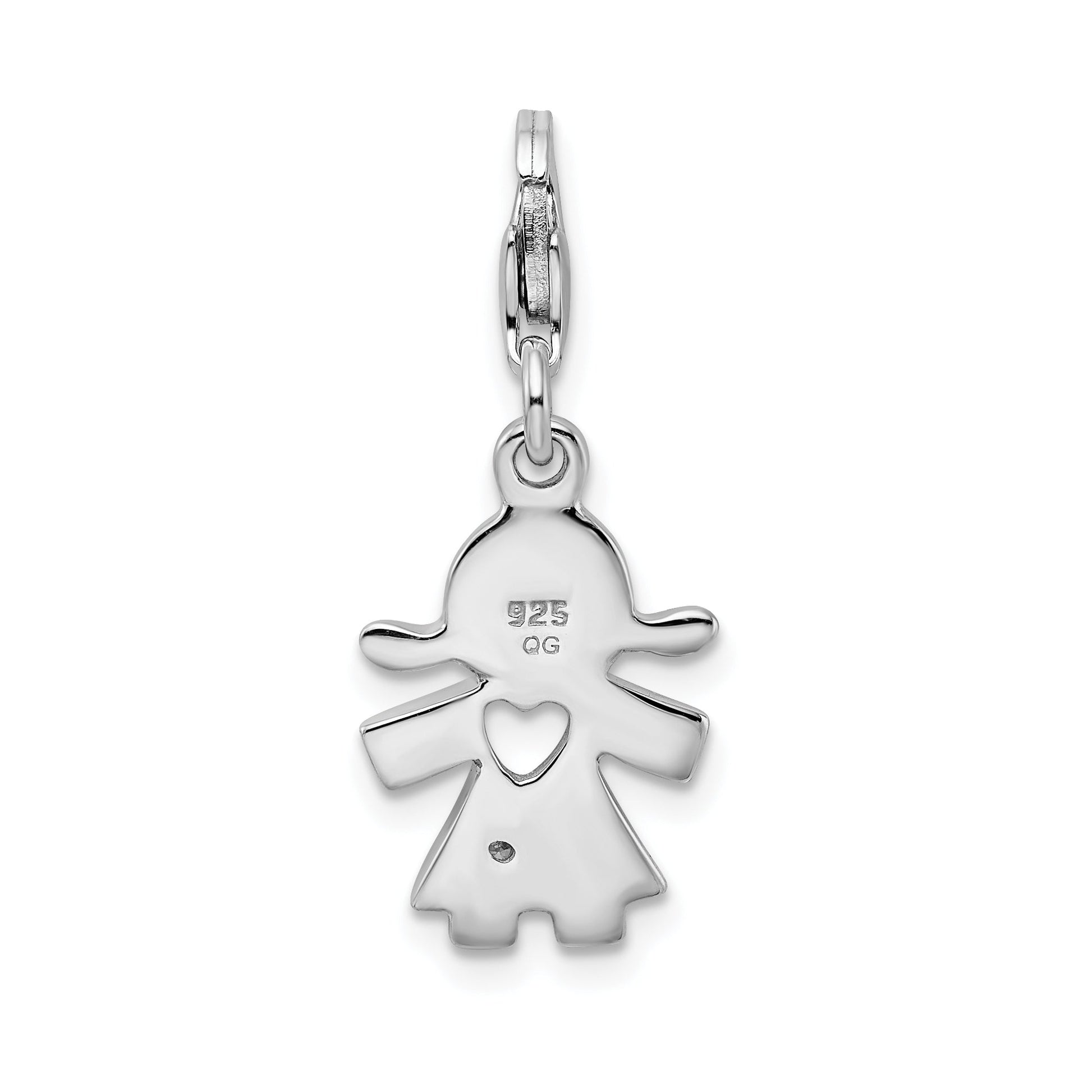 The Sterling Silver Amore La Vita Rhodium-Plated Little Girl Charm brings a touch of innocence and joy. Crafted with precision, this delightful pendant features a cut-out heart design that symbolizes love and purity. It's made from 925 sterling silver and showcases a sparkling white cubic zirconia stone. The rhodium plating ensures a radiant silver tone, adding a touch of elegance. A fancy lobster clasp offers secure wear, making it a cherished piece for any collection. Perfect as a gift or keepsake, the Sterling Silver Amore La Vita charm captures timeless beauty in a delicate form.