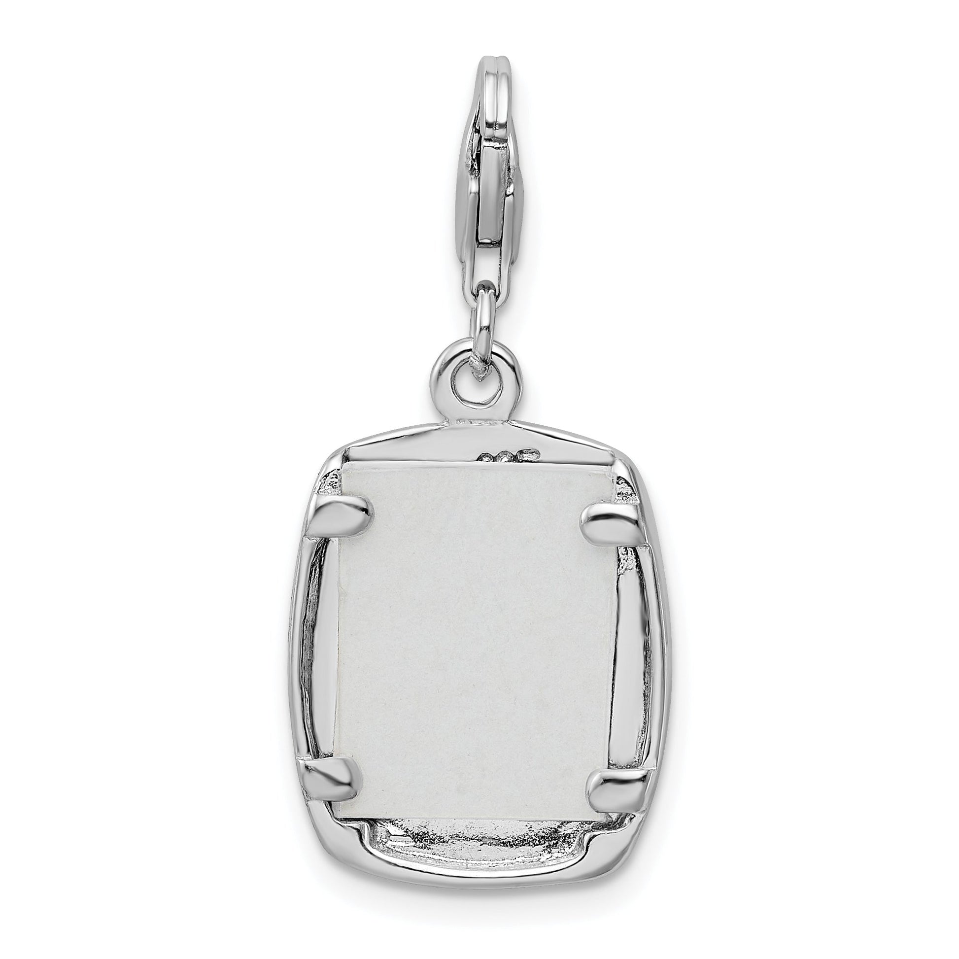 Meet the Sterling Silver Amore La Vita Rhodium-Plated My Baby Frame Charm. Made from polished 925 sterling silver with rhodium plating, this charm exudes elegance and sophistication. The charm measures 19.9 mm in length and 13.75 mm in width, perfect for displaying a cherished photo of your little one. The unique fancy lobster clasp ensures easy attachment to your favorite bracelet or necklace. Its hollow design showcases a silver tone finish, making it a standout piece in any jewelry collection. Capture precious memories with the Sterling Silver Amore La Vita Rhodium-Plated My Baby Frame Charm.