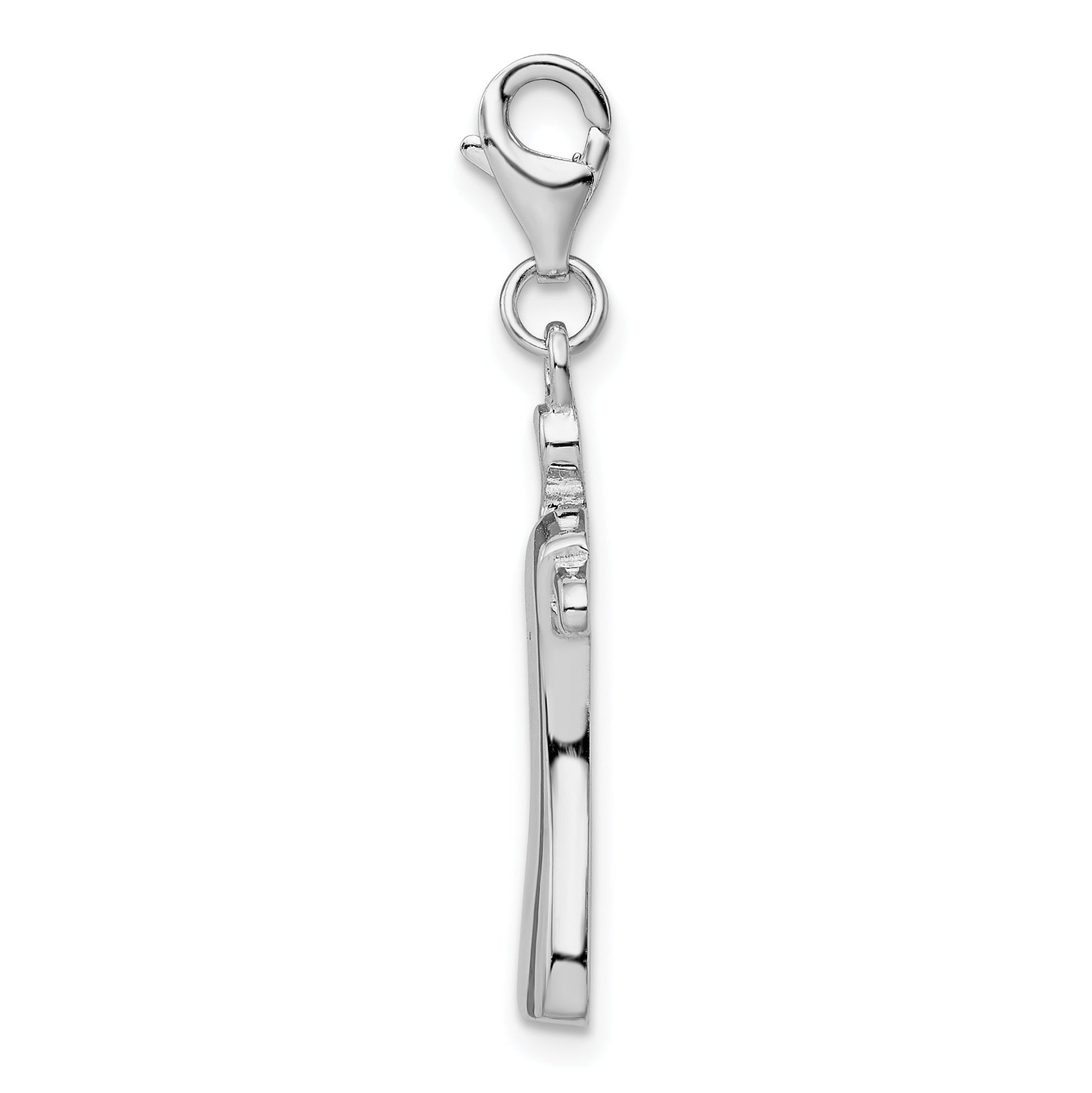 The Sterling Silver Amore La Vita Rhodium-Plated Polished Open Back Dress On Hanger Charm with Lobster Clasp is an exquisite piece of jewelry that captures elegance and style. Crafted from sterling silver with a purity of 925, this charm dazzles with its rhodium plating and enamel accents. The charm showcases a 3D open-back dress design, measuring 33 mm in length and 11 mm in width, making it a stylish addition to any collection. The lobster clasp ensures a secure fit, and its polished silver tone gives a classic finish. Grab this breathtaking piece to elevate your charm collection today.