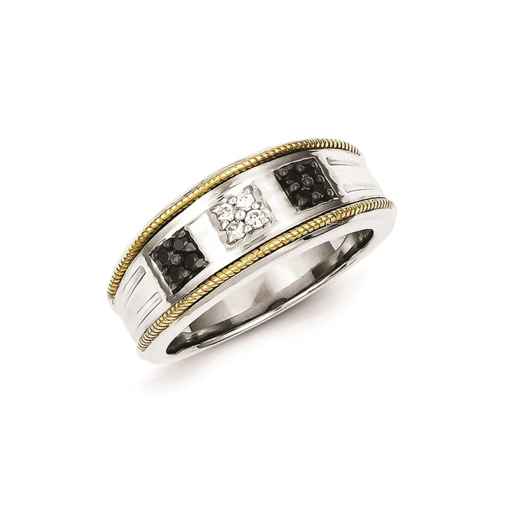 Sterling Silver and Gold Plated Black u0026 White Diamond Men's Ring