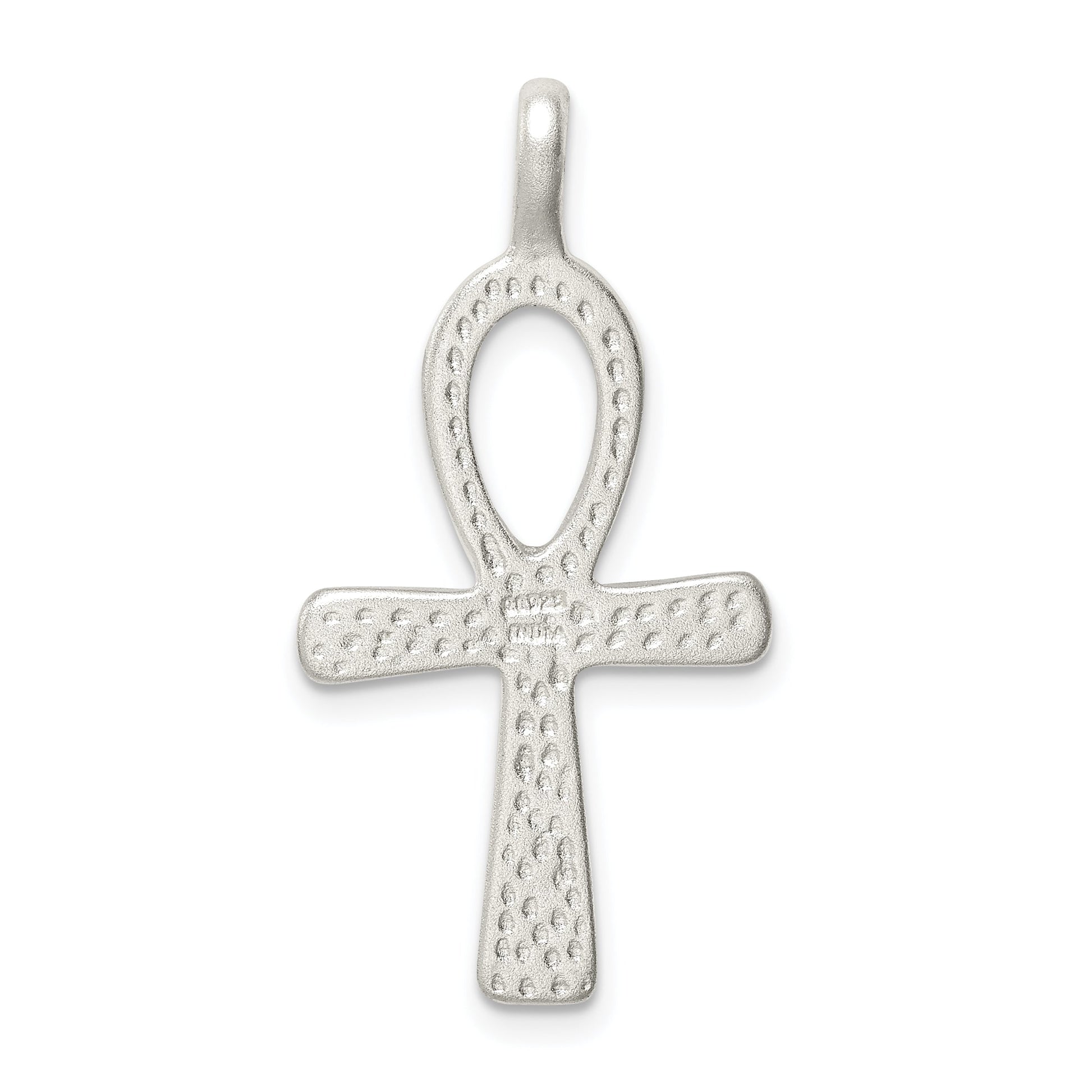 The Sterling Silver Ankh Cross Pendant adds a touch of elegance with its polished 925 sterling silver finish. This exquisite piece measures 34 mm in length, with a charm length of 25.44 mm and width of 15.63 mm. The pendant boasts a flat back profile for comfortable wear and an anti-tarnish coating to maintain its shine. Its solid construction is the result of a meticulous casting process, ensuring quality and durability. Grab the Sterling Silver Ankh Cross Pendant to elevate any outfit with its timeless appeal and symbolic beauty.