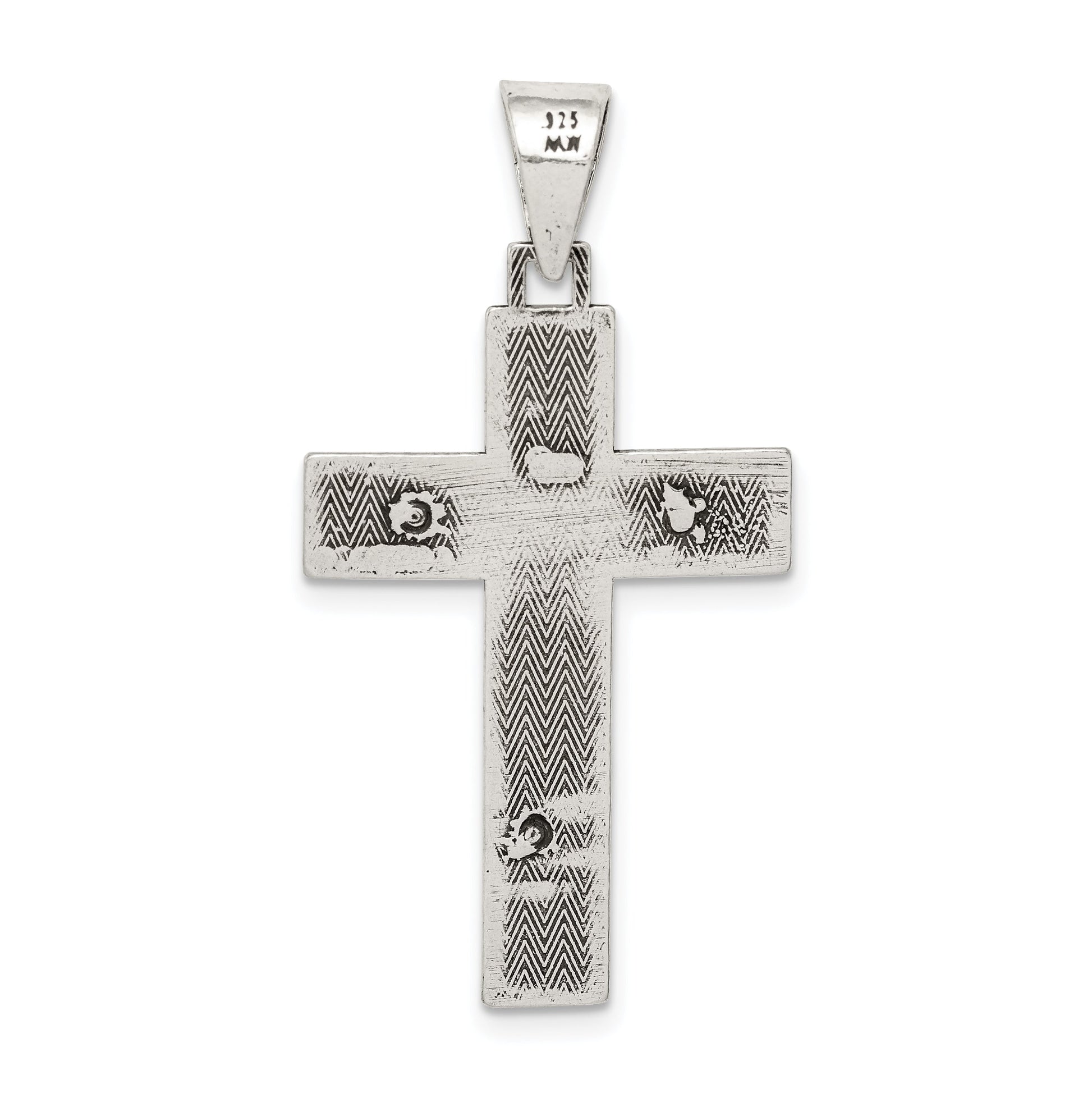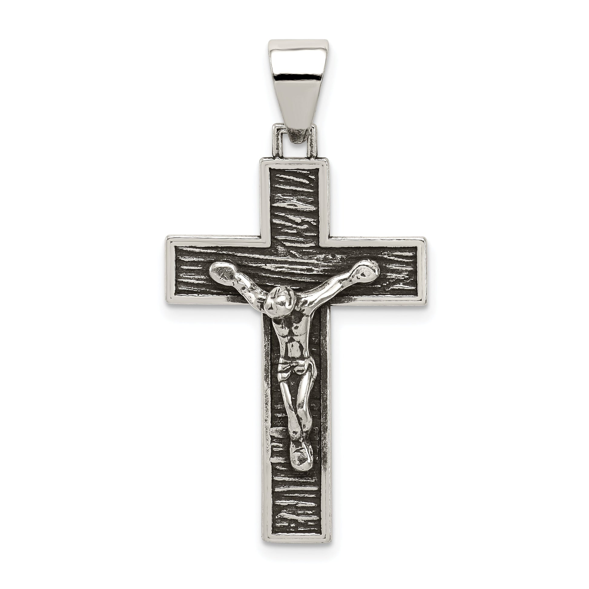 The Sterling Silver Antiqued Box Cross Crucifix Pendant is a striking piece of jewelry crafted with precision. Made from high-quality 925 sterling silver, this pendant boasts a polished finish that enhances its timeless charm. With a solid build, this piece measures 37mm in length, 19.25mm in width, and 5mm in thickness, making it noticeable yet comfortable to wear. Its flat-back design ensures it rests smoothly against any outfit. Whether worn daily or on special occasions, the Sterling Silver Antiqued Box Cross Crucifix Pendant adds a touch of elegance to any jewelry collection.