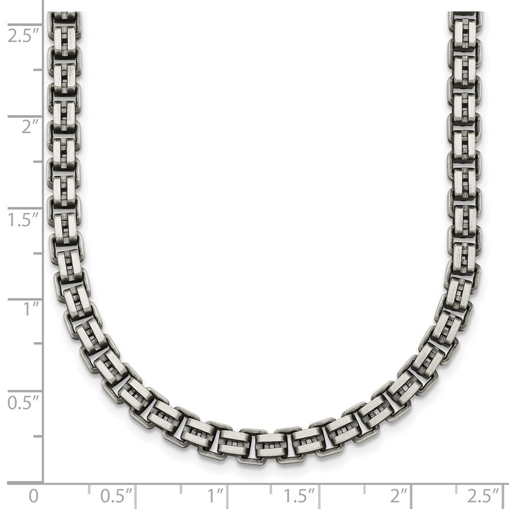 Sterling Silver Antiqued Brushed 5.00mm Fancy Box Link 19.75 Inch Necklace