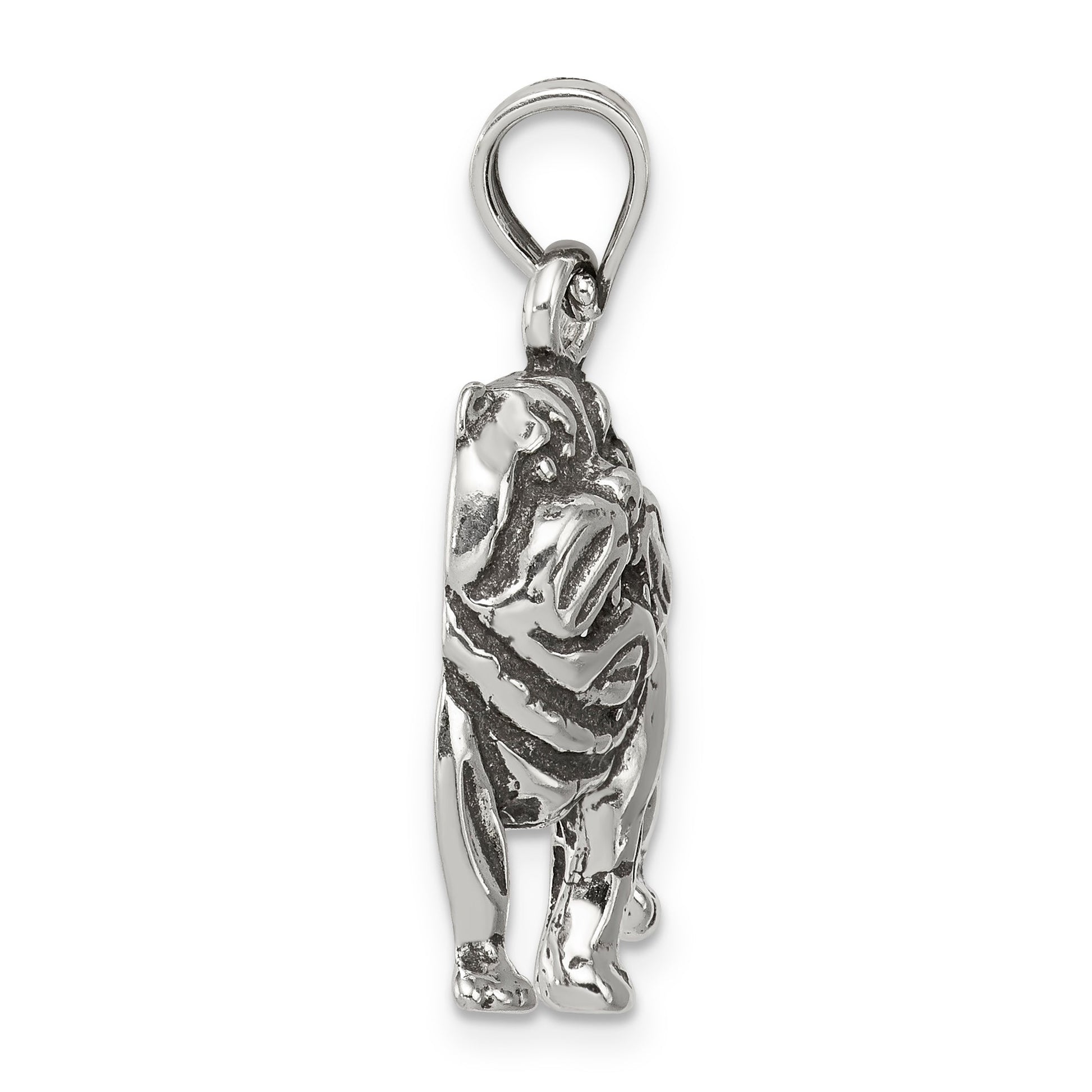The Sterling Silver Antiqued Bulldog Pendant captures the strength and spirit of a beloved breed. Crafted with sterling silver, this solid piece offers a detailed representation of a bulldog, perfect for anyone who finds charm in this valiant canine. Its casted design ensures durability, making it a timeless accessory. Measuring 23.25 mm in length and 17.65 mm in width, this men's pendant features an antiqued finish that highlights its intricate details. Elevate everyday style with the Sterling Silver Antiqued Bulldog Pendant, a must-have for any bulldog enthusiast.