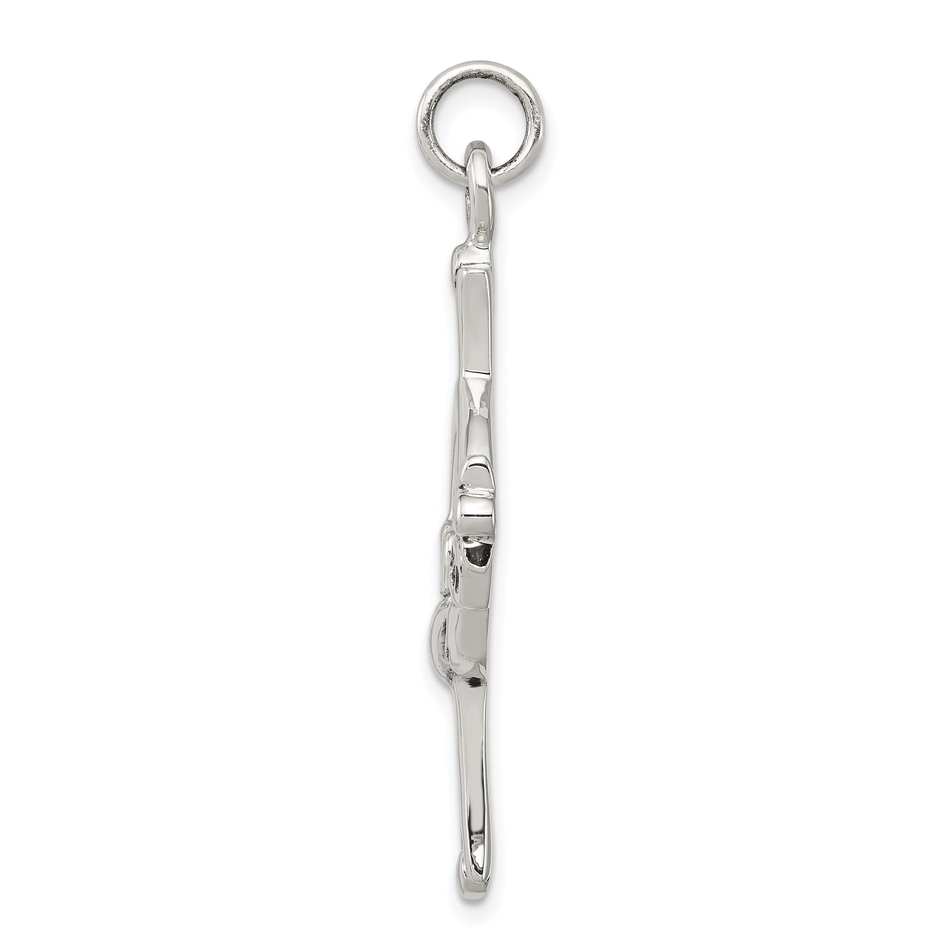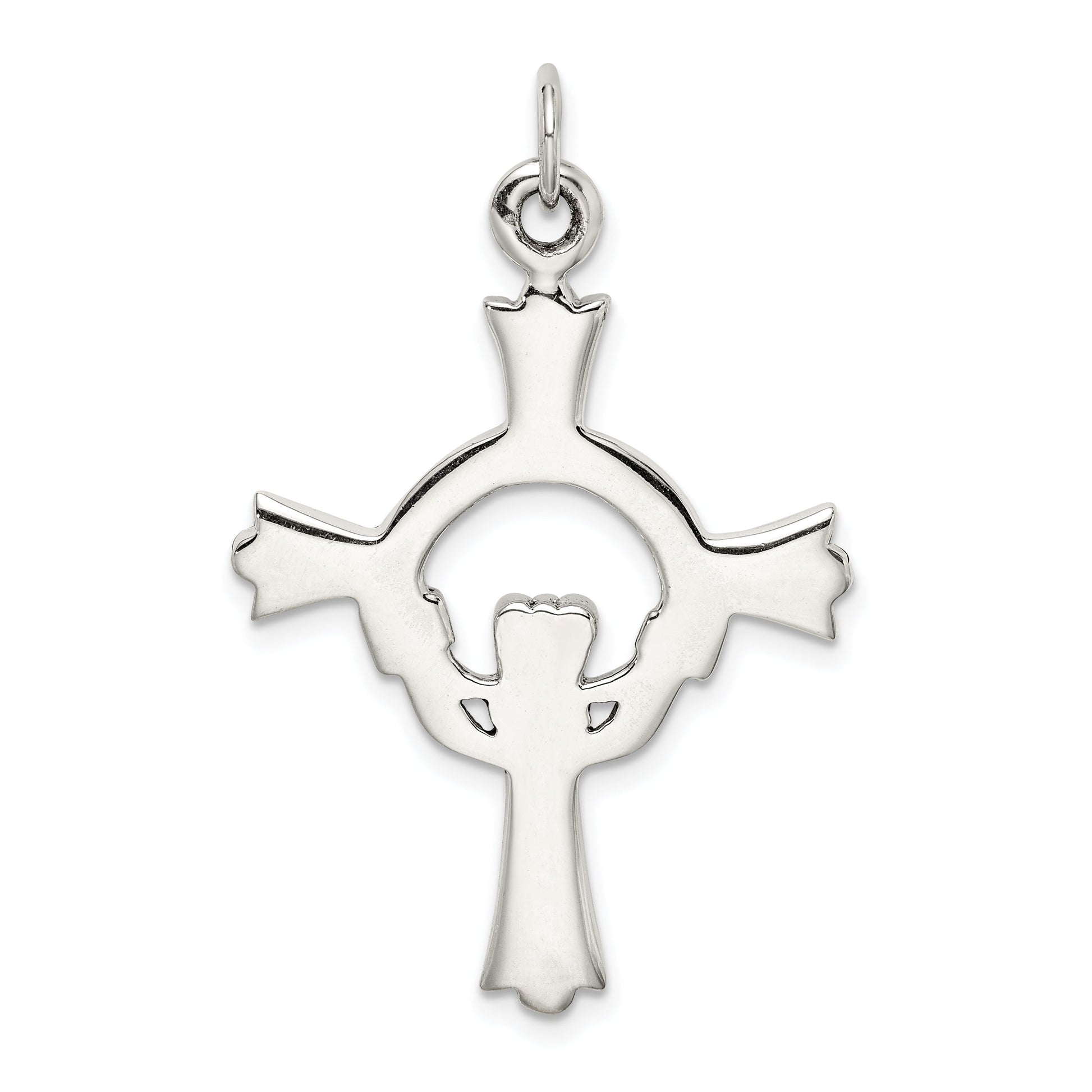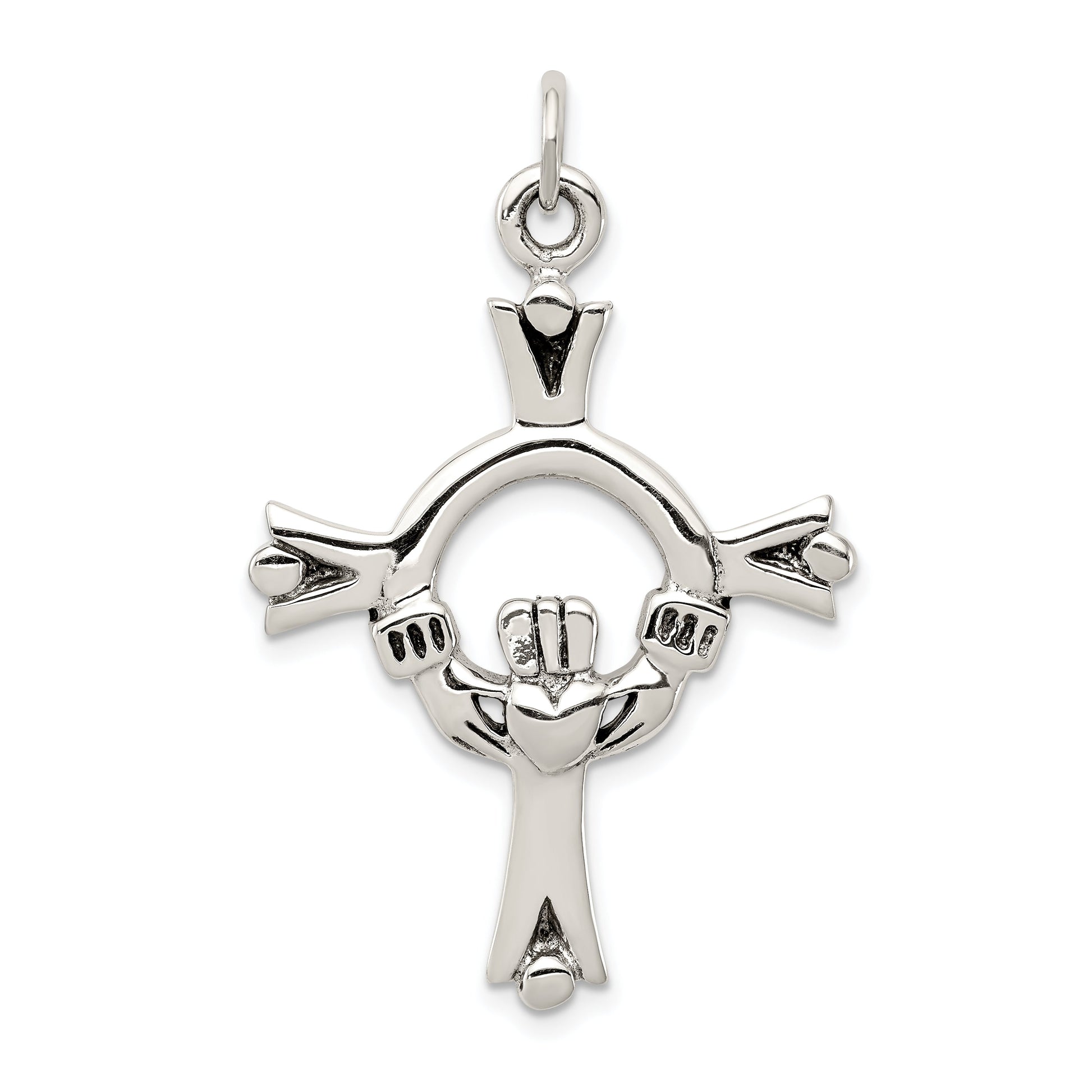 Meet elegance with the Sterling Silver Antiqued Claddagh Cross Charm. This finely crafted piece of jewelry gleams with 925 sterling silver, ensuring lasting beauty. Its polished finish enhances the timeless design, while its solid, casted form offers durability. Measuring at a length of 42 mm, with charm dimensions of 32.1 mm by 26 mm, it makes a striking yet delicate statement. Perfect for any themed collection, this flat-back pendant exudes sophistication. Embrace the heritage and symbolism of a classic piece with the Sterling Silver Antiqued Claddagh Cross Charm.