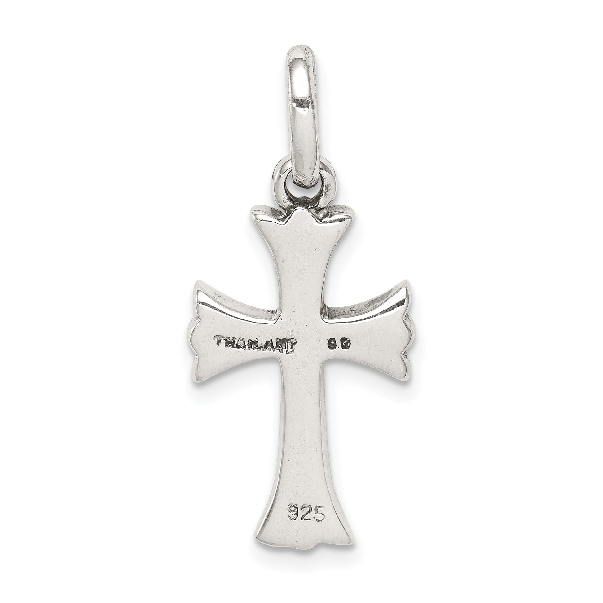 Introducing the Sterling Silver Antiqued Cross Pendant, a timeless piece crafted for elegance. Made from high-quality 925 sterling silver, this solid pendant features a classic antiqued finish. Its dimensions, 24 mm in length and 14 mm in width, create a striking profile that stands out. The cross pendant's flat-back design ensures it sits comfortably against the skin, while the 8 mm bail fits most chains with ease. With its refined white hue, this piece embodies both modern and vintage charm. Add the Sterling Silver Antiqued Cross Pendant to your collection for a touch of timeless grace.