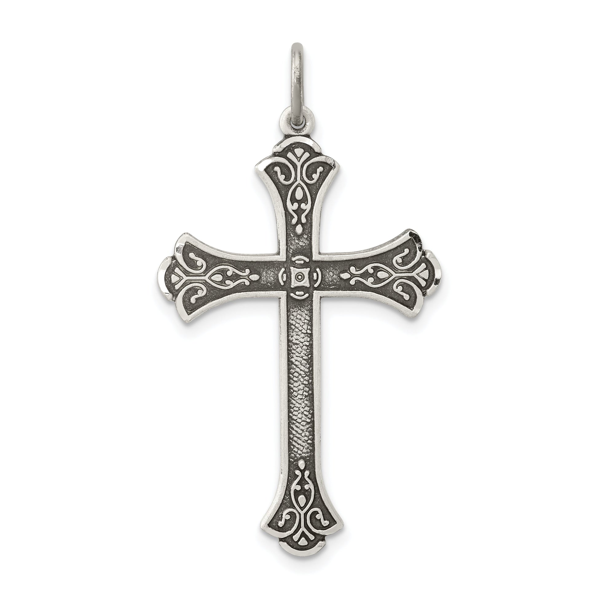 Introducing the Sterling Silver Antiqued Cross Pendant, a testament to timeless elegance and grace. Crafted from 925 sterling silver, this polished piece boasts a luminous white finish. With a length of 35 mm and a width of 22 mm, its solid, die-struck design ensures both durability and style. The charm's antiqued effect adds a touch of vintage allure, making it a flattering addition to any jewelry collection. Whether worn solo or layered with other pieces, the Sterling Silver Antiqued Cross Pendant effortlessly elevates and shines in any ensemble.