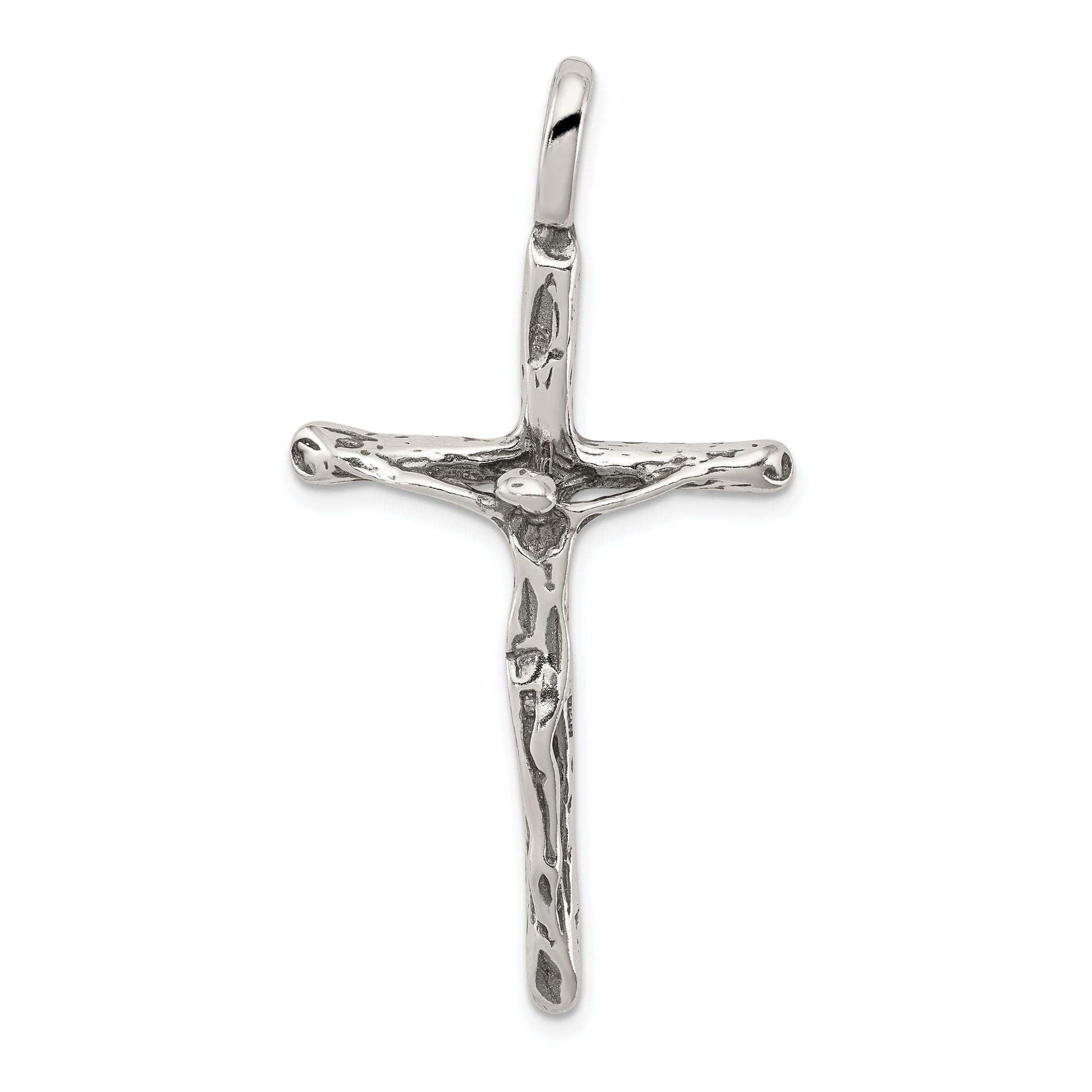 The Sterling Silver Antiqued Crucifix Charm is a striking statement piece for jewelry lovers. Fashioned from genuine 925 sterling silver, this charm is durable and exudes a timeless shine thanks to its polished finish. Measuring 48 mm in length and 25 mm in width, the crucifix charm showcases detailed craftsmanship through its casted construction and antiqued design. Its charm length is 37.25 mm while the width is 24.7 mm, providing a solid and sturdy feel. With a closed-back profile, this charm is perfect for pendants or as a themed piece in your collection. Add this eye-catching Sterling Silver Antiqued Crucifix Charm to your jewelry box today.