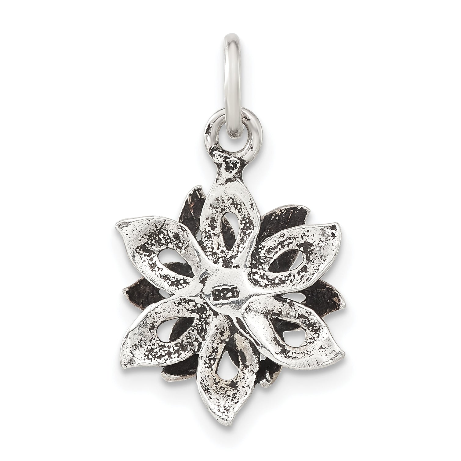 Introducing the Sterling Silver Antiqued Flower Pendant, a stunning piece crafted with precision and care. Made from 925 sterling silver, this pendant features a captivating polished and antiqued finish that highlights its floral design. Measuring 23.45 mm in length and 14.5 mm in width, the semi-solid casted piece offers both durability and charm. Ideal for any occasion, this themed pendant captures the elegance and timeless appeal of flower motifs. Designed specifically for women, the Sterling Silver Antiqued Flower Pendant is a beautiful addition to any jewelry collection.